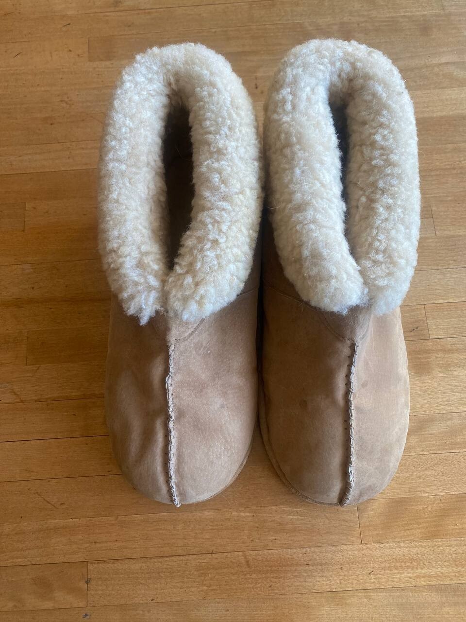 как выглядит Unisex Sheepskin Ankle Boot Slippers Ankle Sand Color Womens Size 9.5-10 фото
