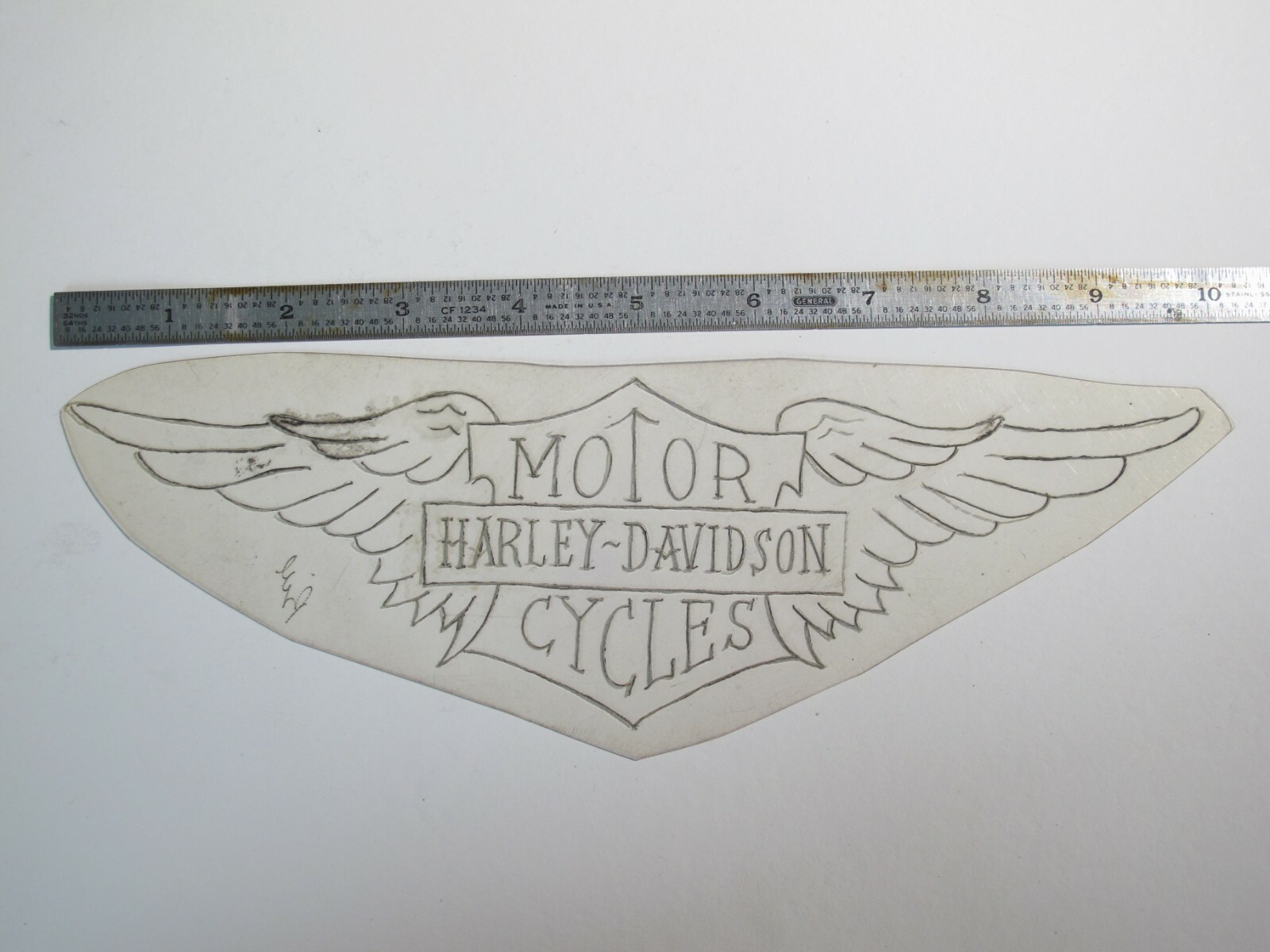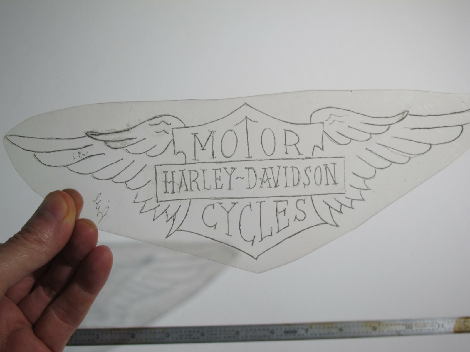 vtg 1960s 1970s Tattoo acetate stencil Motor Cycles LG. signed