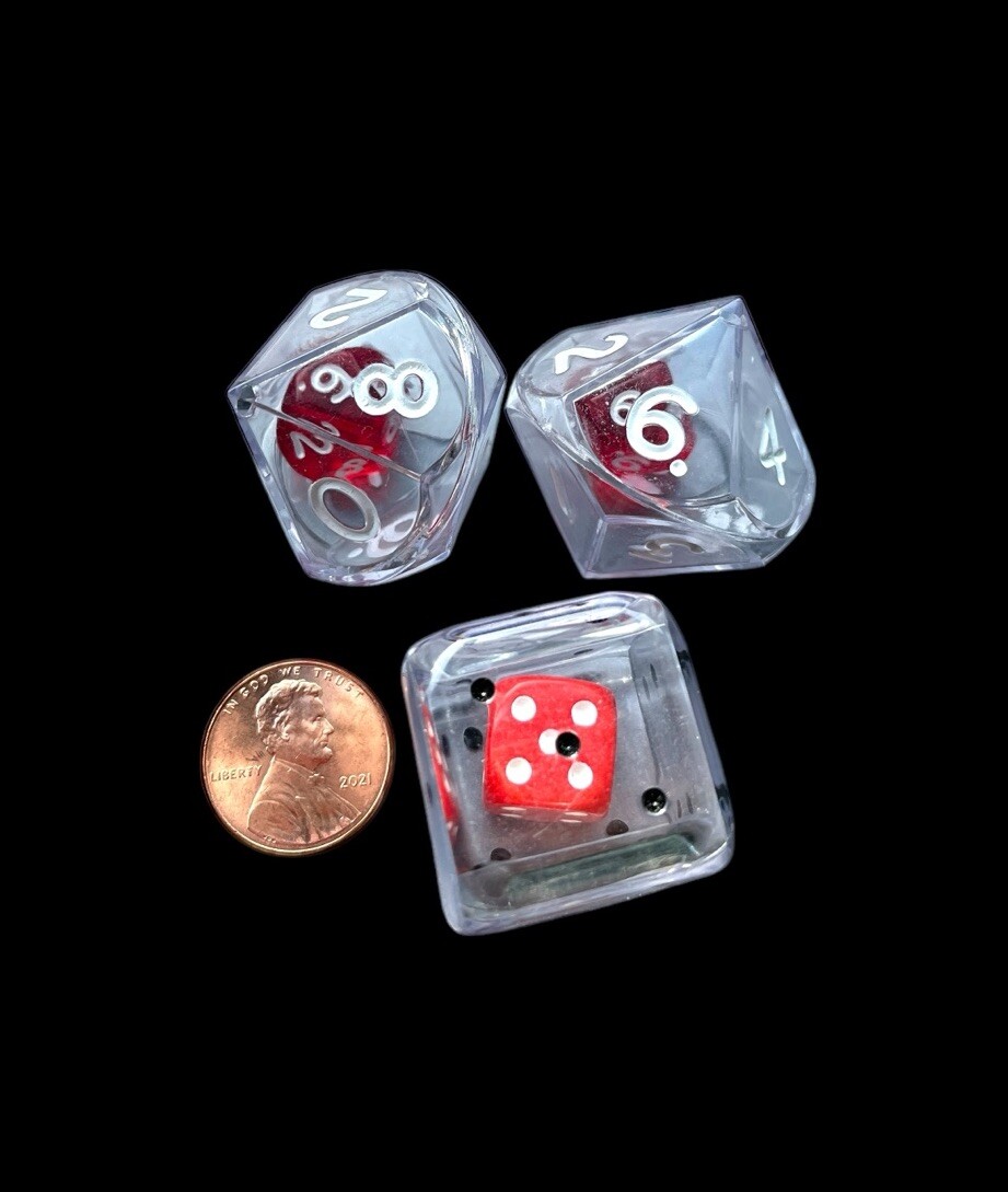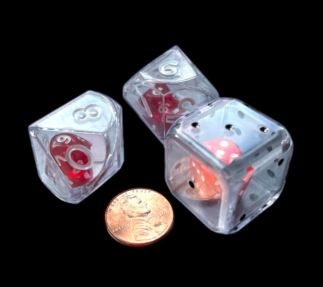 Set of 3 Clear DOUBLE DICE Red Game Math Dice