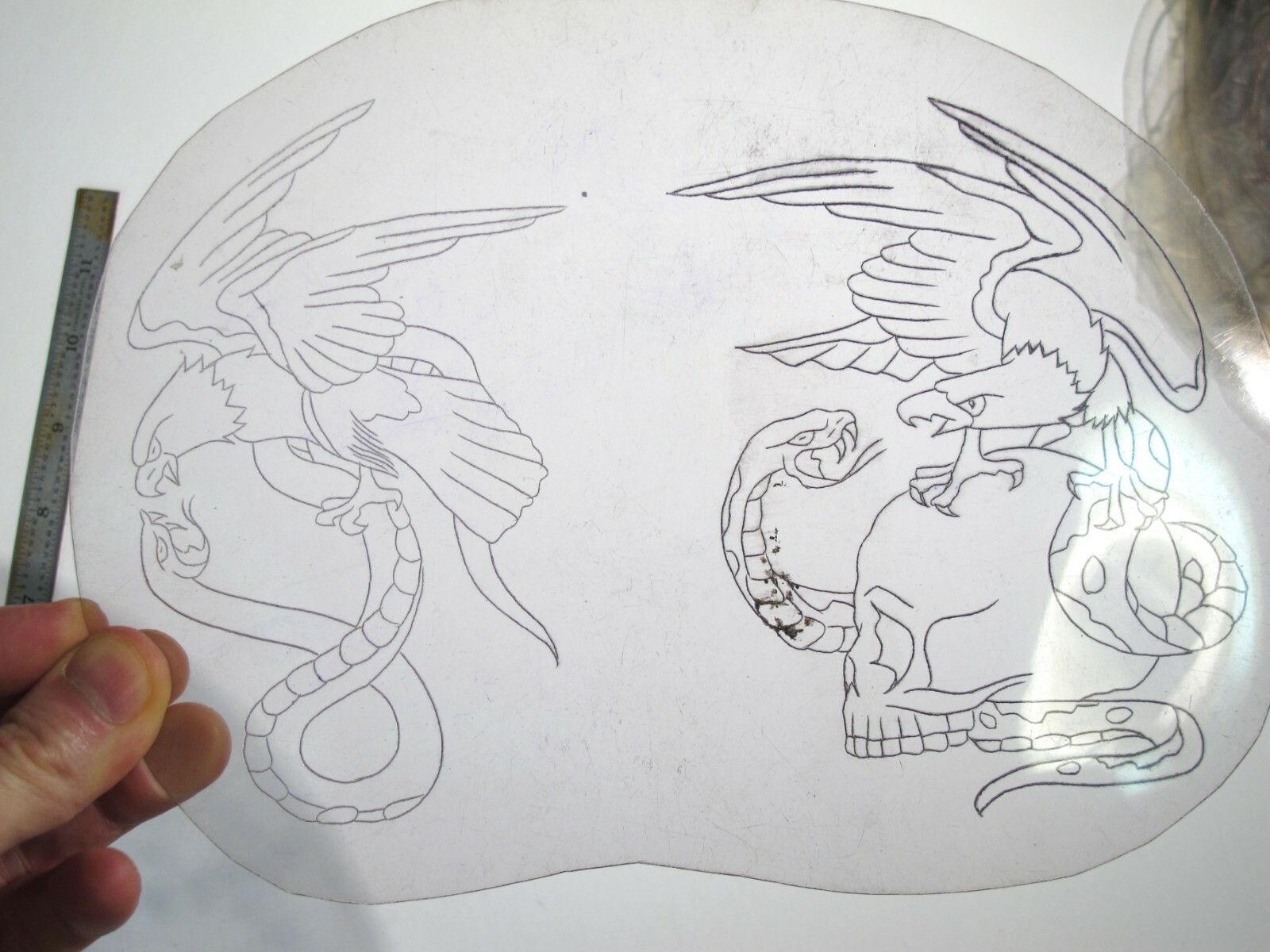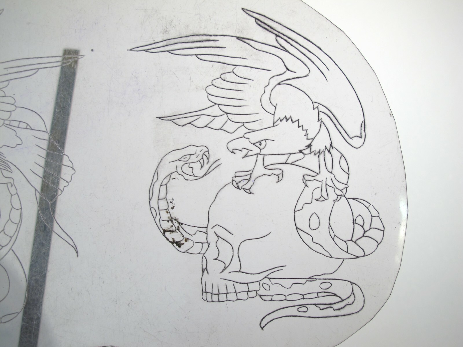 vtg 1960s 1970s Tattoo acetate stencil Eagles and Snakes LG