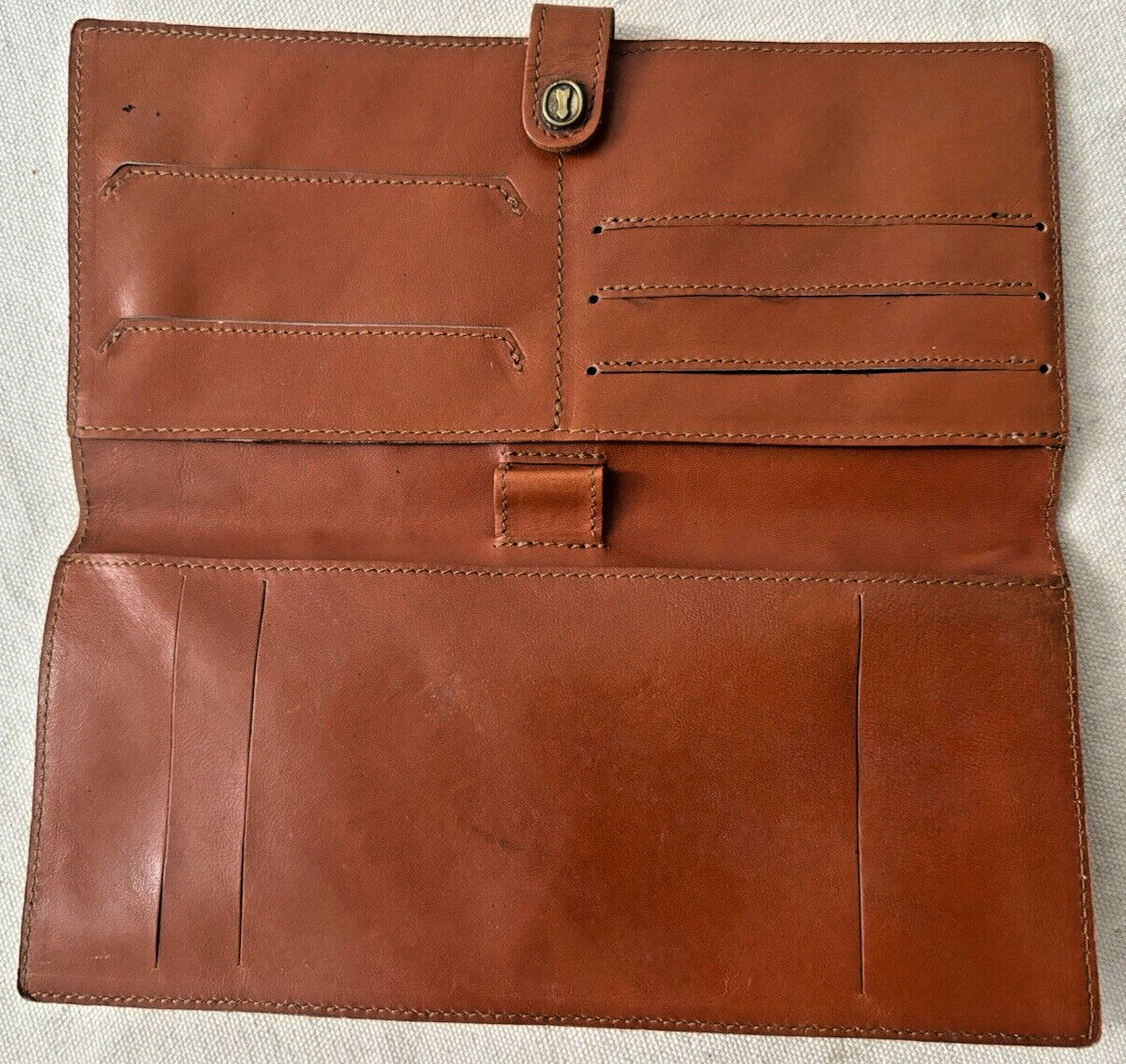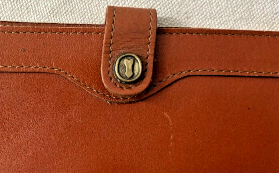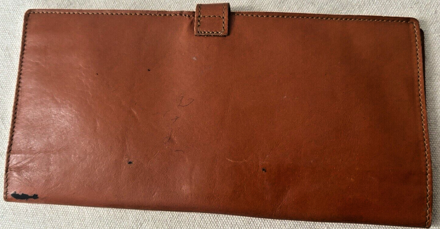 как выглядит Vintage Cognac Real Leather Checkbook Cover Wallet w/Snap GUC фото