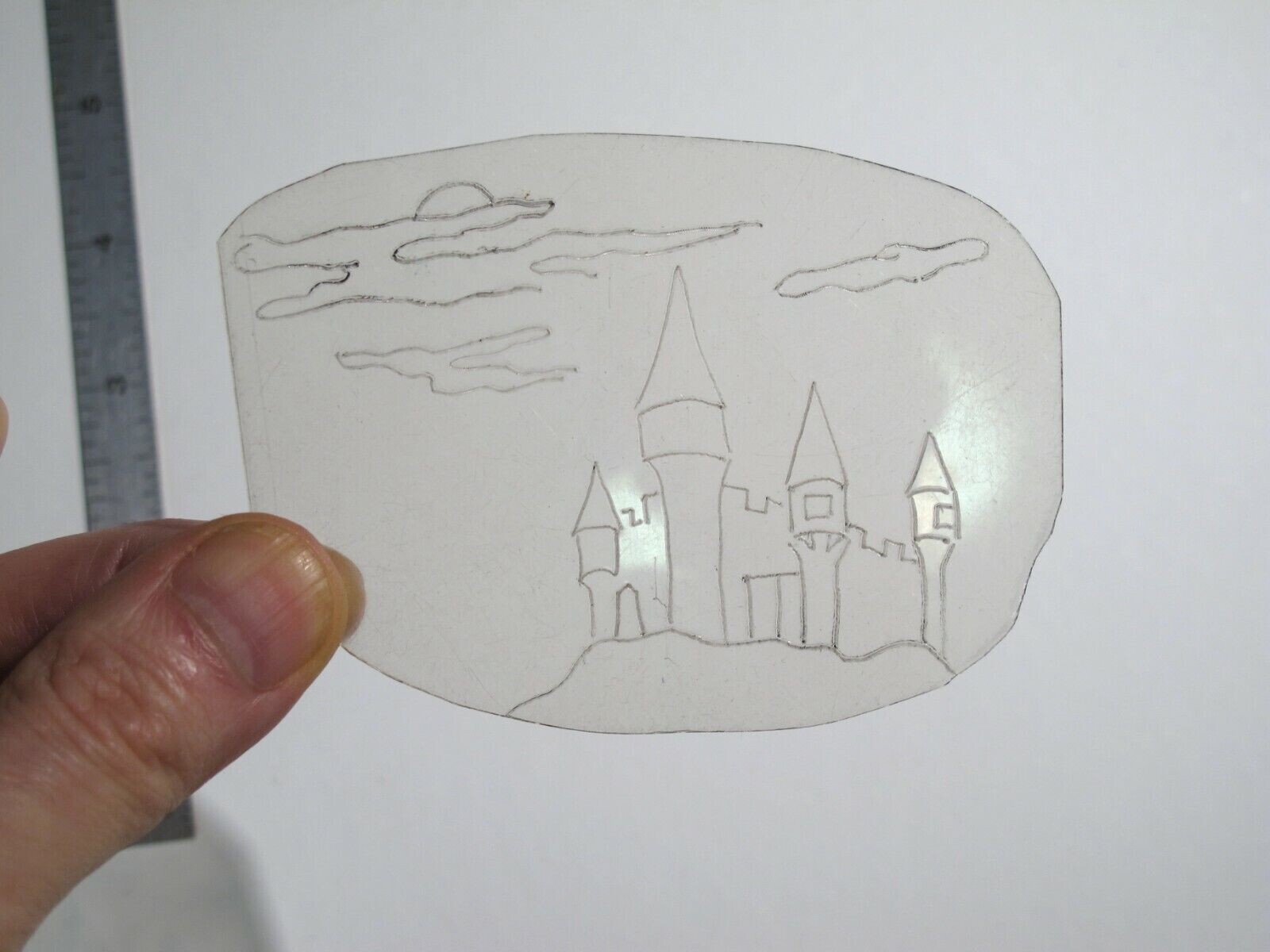 vtg 1960s 1970s Tattoo acetate stencil Castle and Clouds D D VIK
