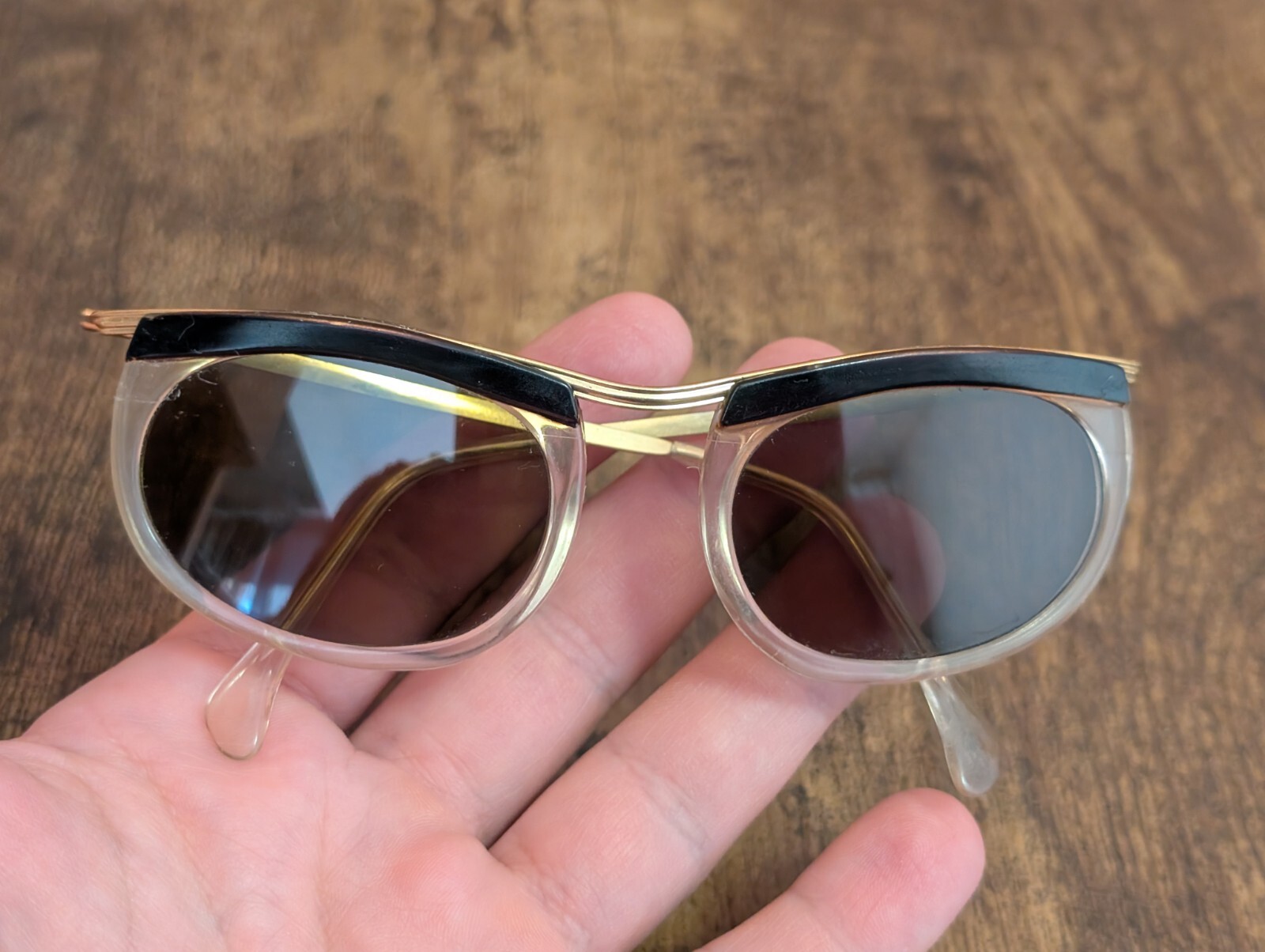 VINTAGE 40S NOS GOLD PLATED PILOT SUNGLASSES MADE IN FRANCE 27