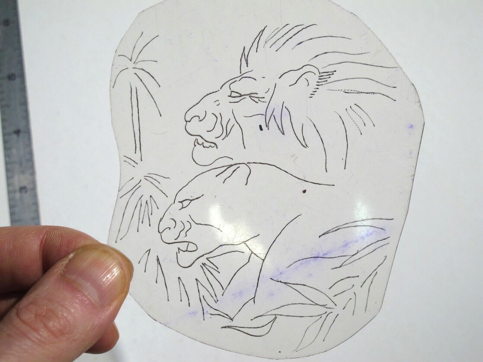 vtg 1960s 1970s Tattoo acetate stencil Two Lions and Jungle LT1