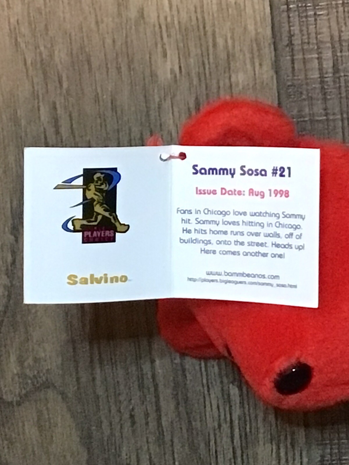 22 1998 Salvino s Bamm Beanos - Sammy Sosa 21 Retired - Tags Attached - Cubs