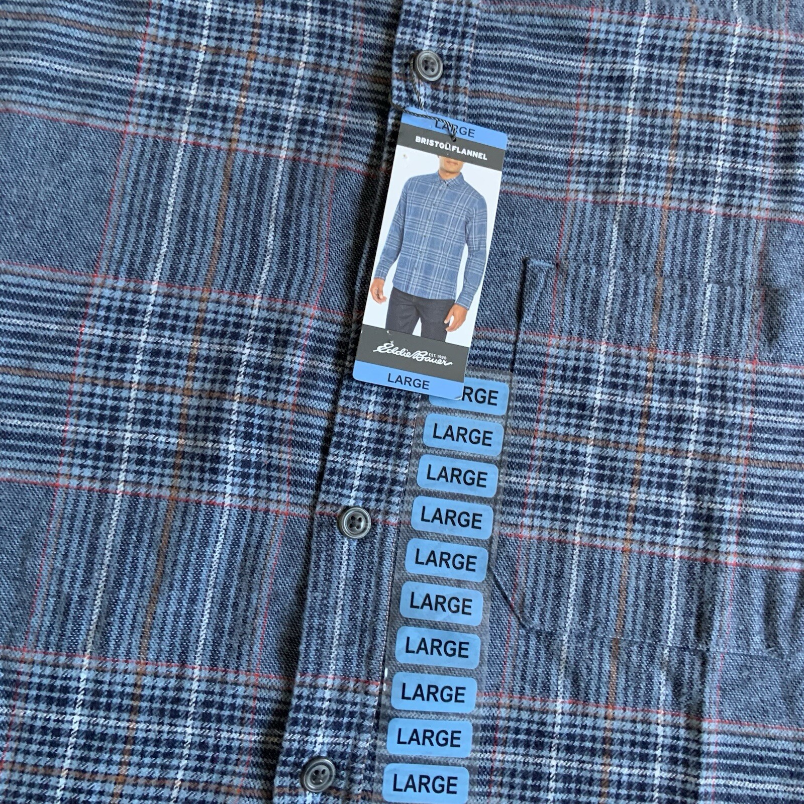 как выглядит Eddie Bauer Mens Bristol Cotton Flannel Shirt Plaid Blue Size Large Long Sleeve фото