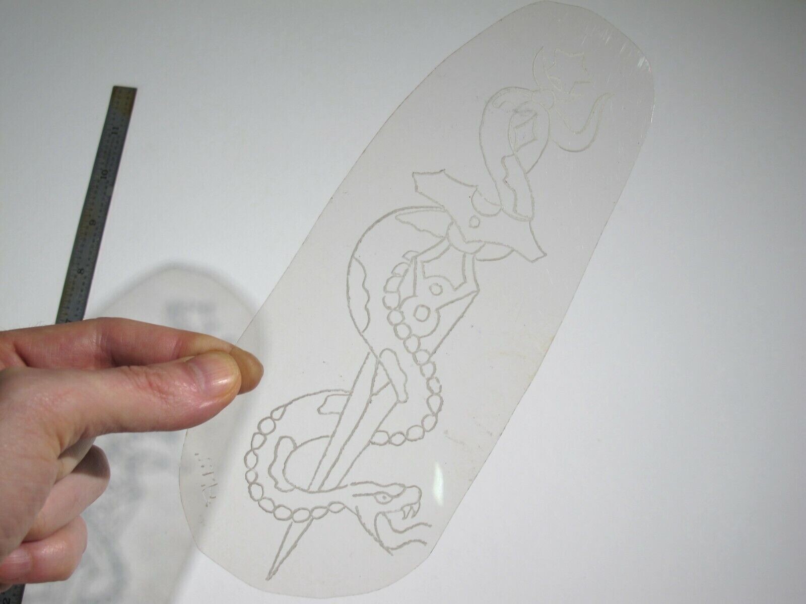 vtg 1960s 1970s Tattoo Flash acetate stencil Snake Wrapping Sword signed KN3/4