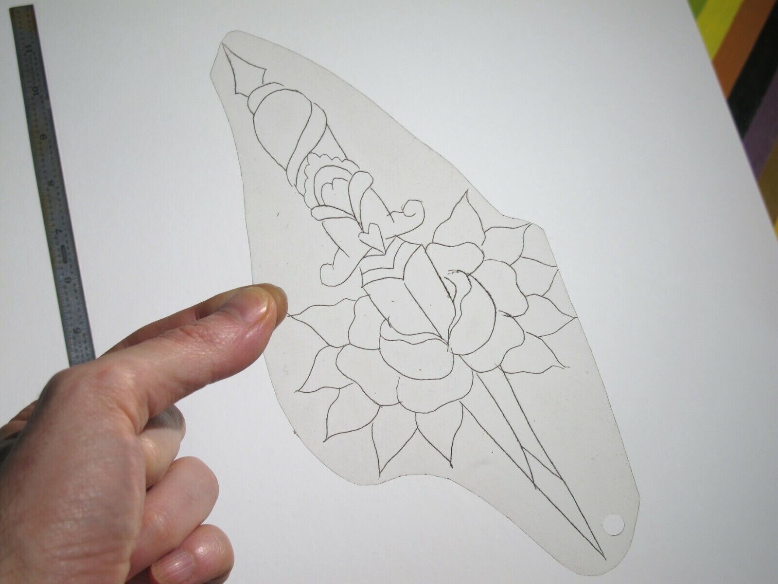 vtg 1960s 1970s Tattoo Flash acetate stencil Sword Through Rose v2 KN3/4