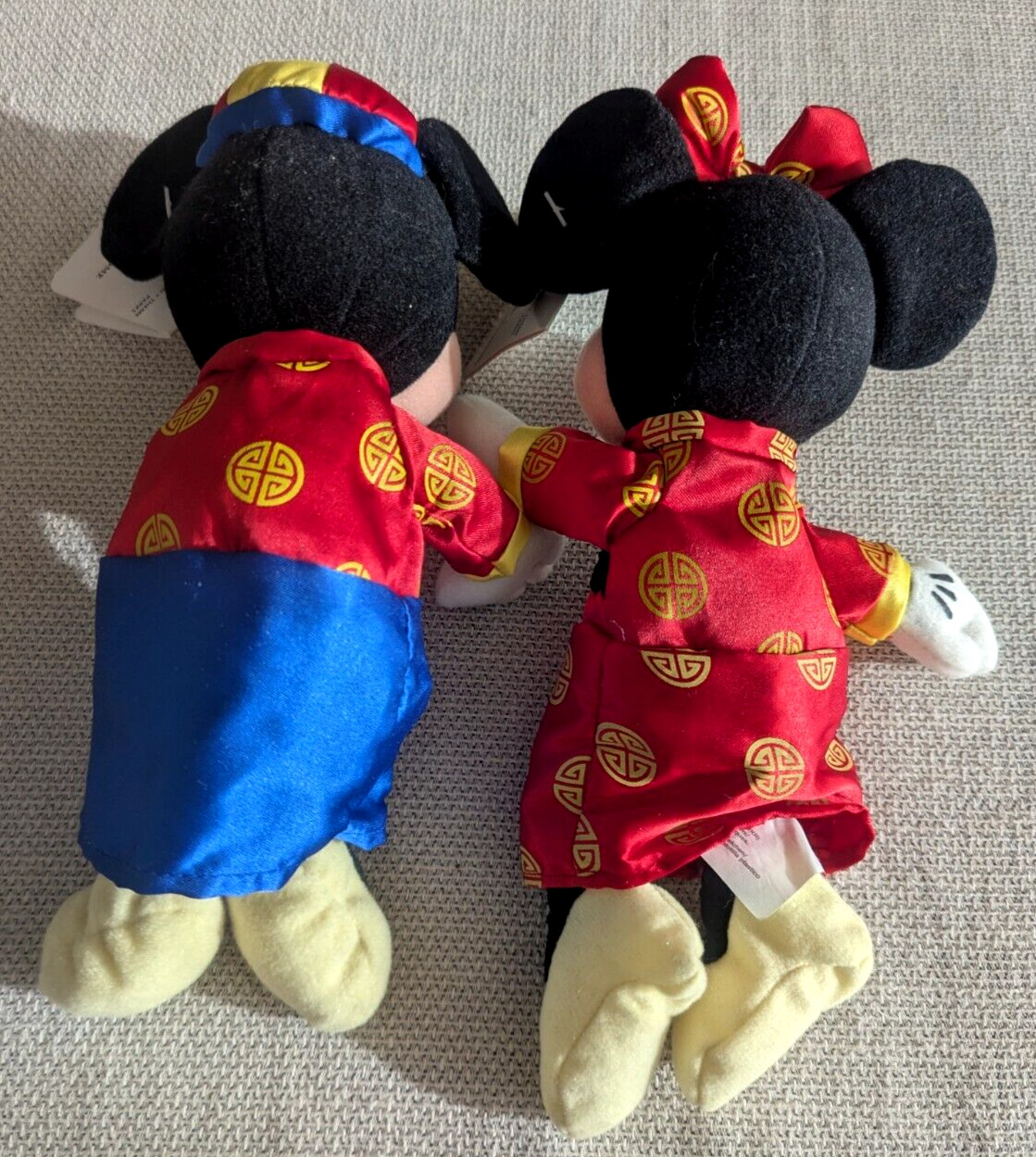 Disney Store Mickey Minnie Mouse Chinese New Year Costume Bean Bag Plush 9.5