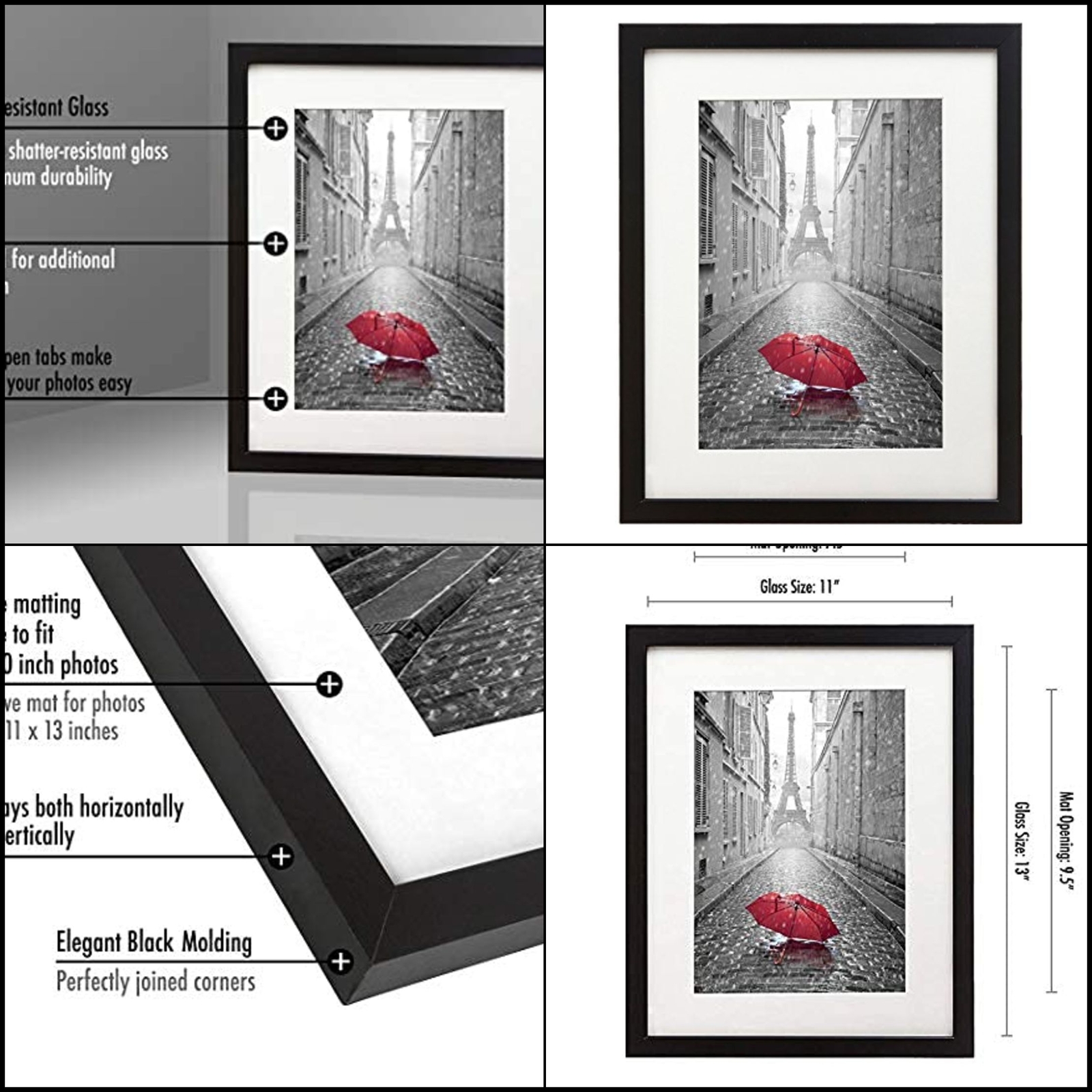 11x13 Picture Frame with Shatter-Resistant Glass - Use as 8x10 Frame with Mat...