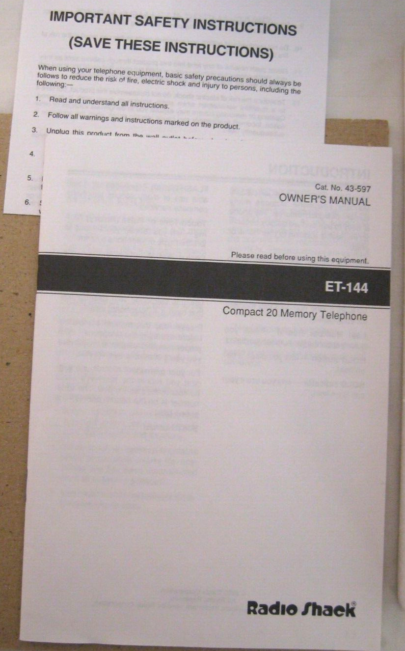VINTAGE 1980S RADIO SHACK TONE PULSE DIALING TELEPHONE ET-144, Cat. No 43-597
