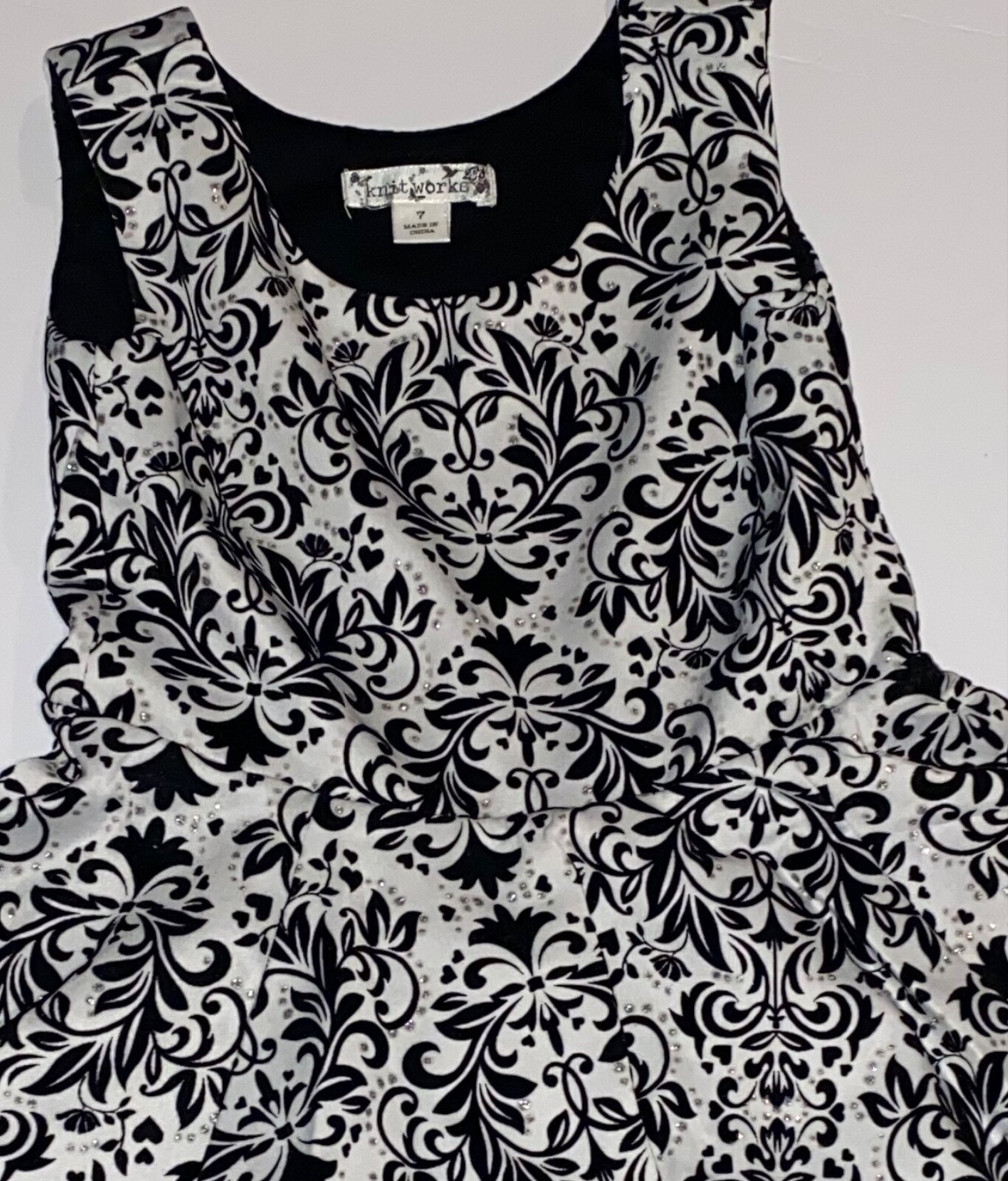 Girls Size 7 Knit Works Black White Christmas Holiday Party Dress