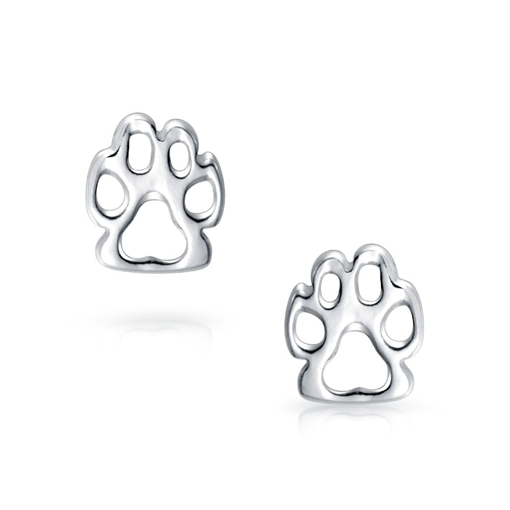BFF Animal Lover Paw Print Stud Earrings for Pet Dog Cat in Sterling Silver