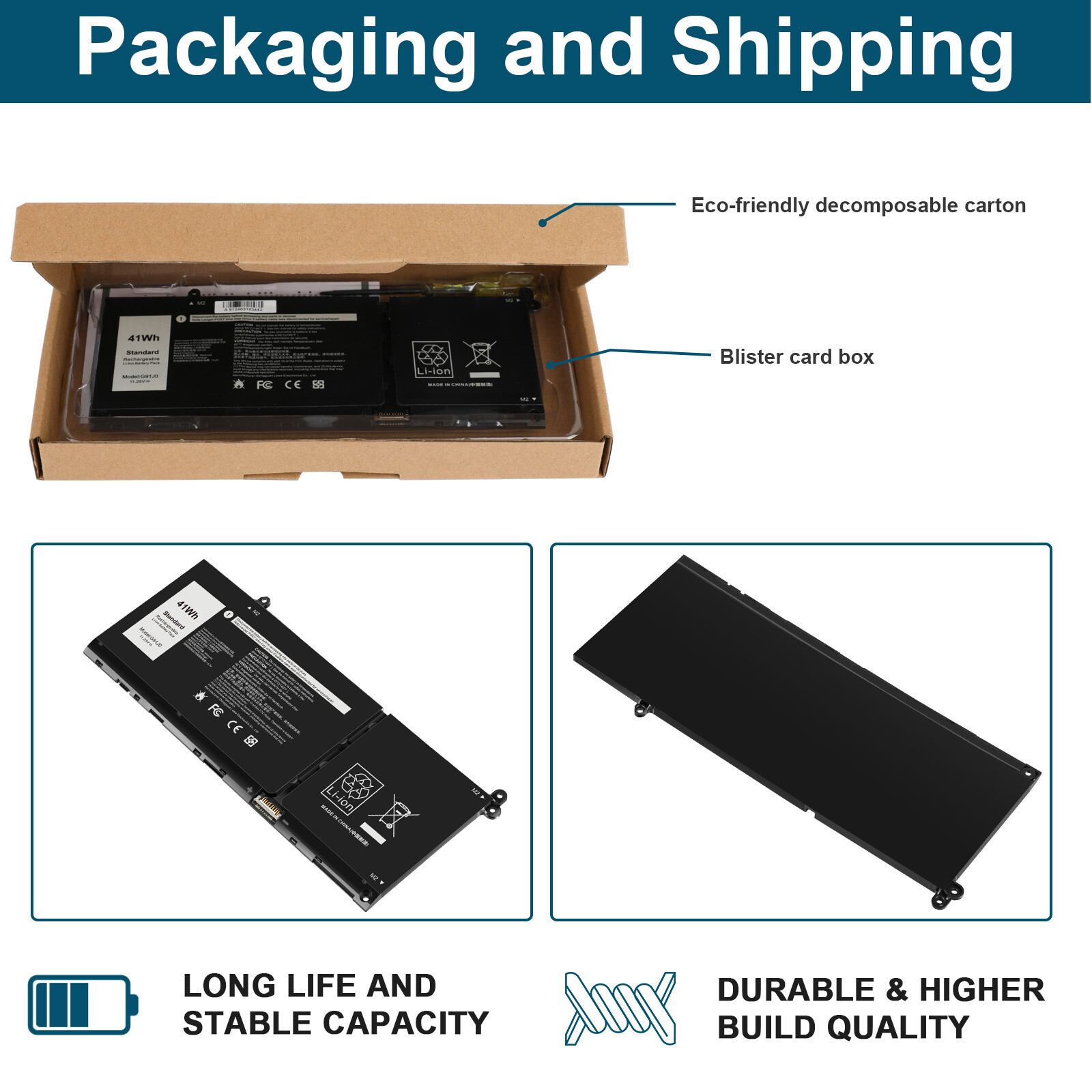 как выглядит For Dell Latitude 3320 3420 3520 Inspiron 3515 3420 3520 Battery - G91J0 фото