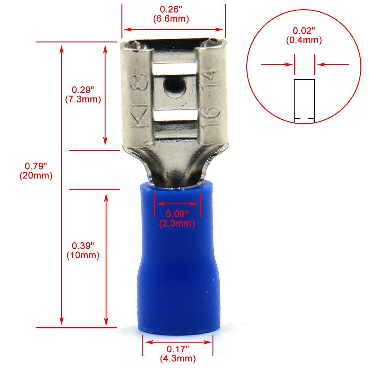100 Pack 1/4 Female Quick Disconnects Vinyl Insulated Spade Wire Connector