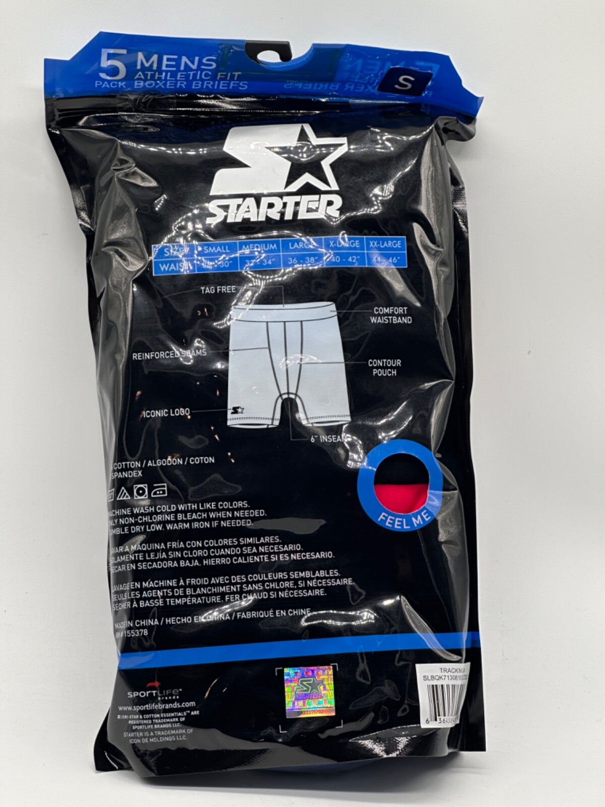 NEW 5 PAIR PACK STARTER MENS ATHLETIC FIT BOXER BRIEF COTTON ESSENTIAL 6 INSEAM
