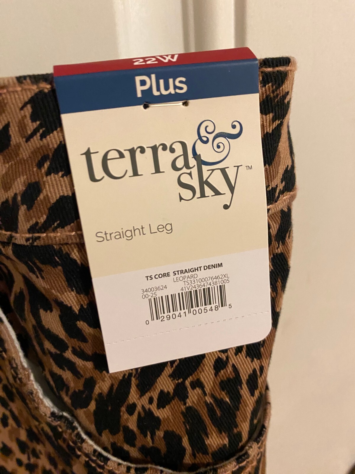 BRAND NEW WOMEN'S SIZE 22W TERRA SKY STRAIGHT LEG Leopard JEANS