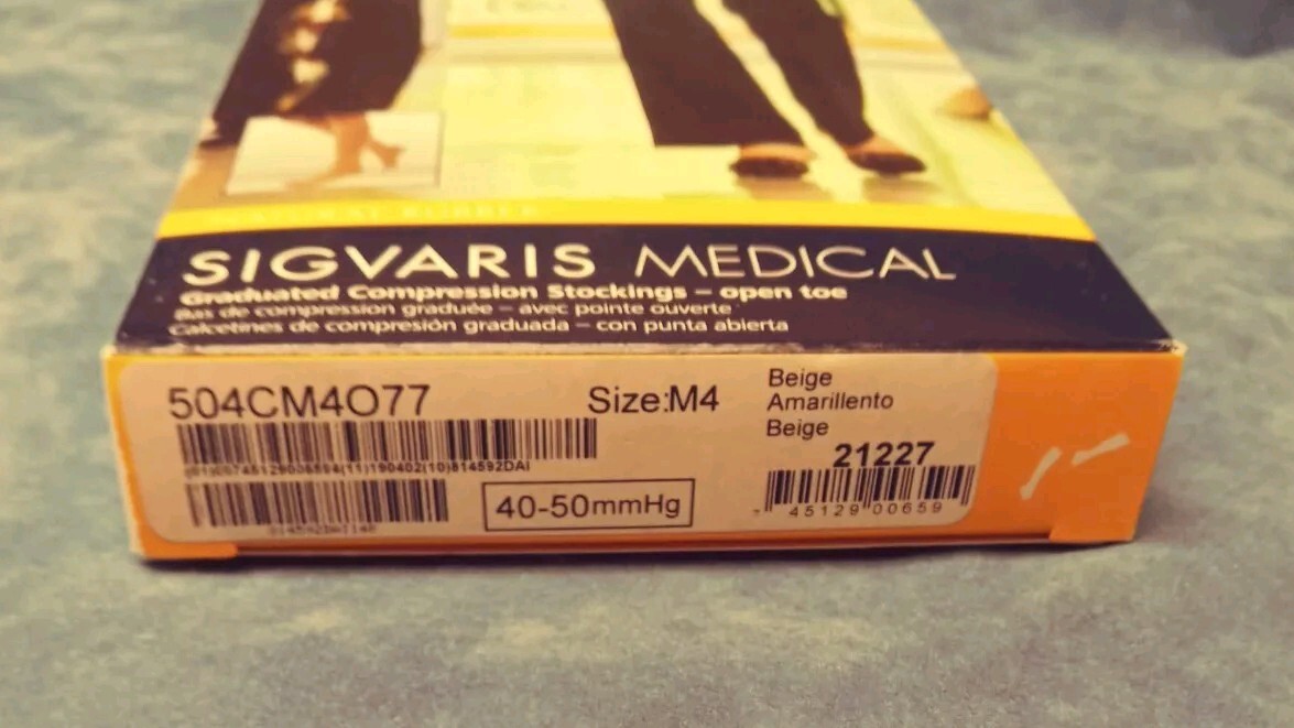 как выглядит New SIGVARIS Beige Open Toe Graduated Compression Knee-high Size M4 40-50 mmHg фото