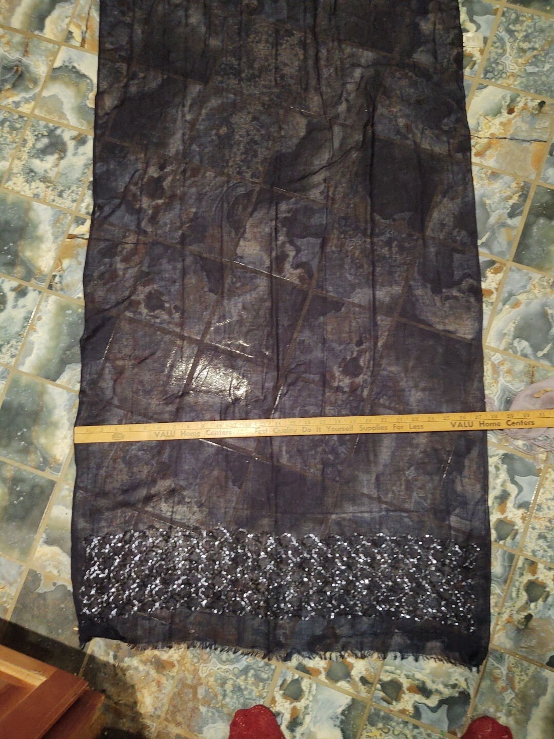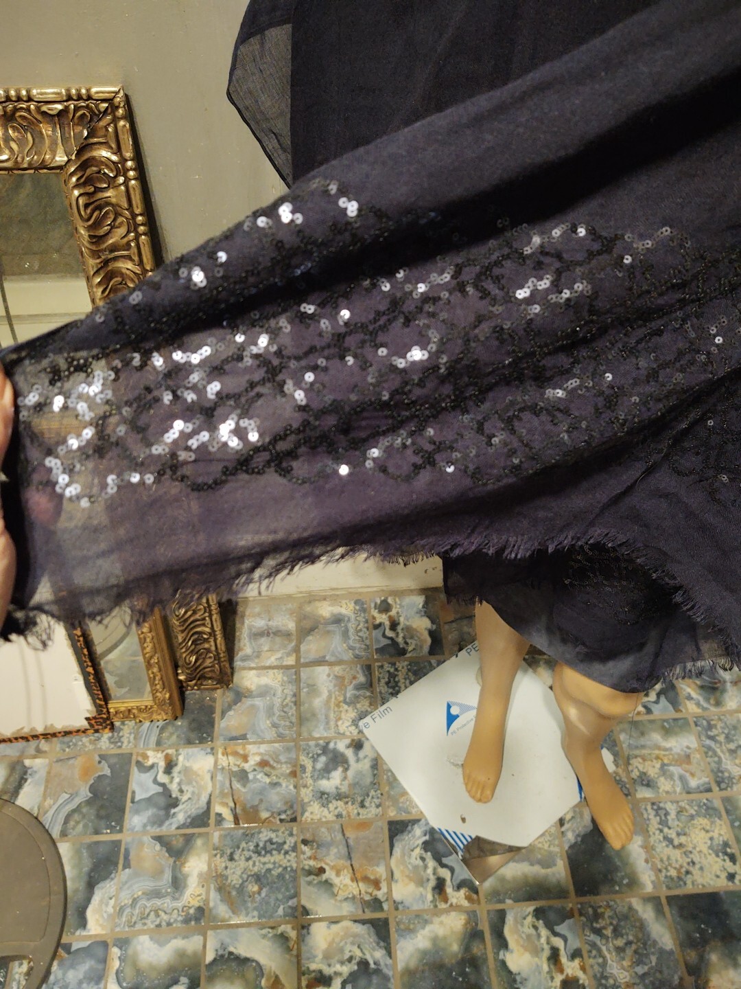 как выглядит Navy Blue Shawl Scarf With Sequins фото