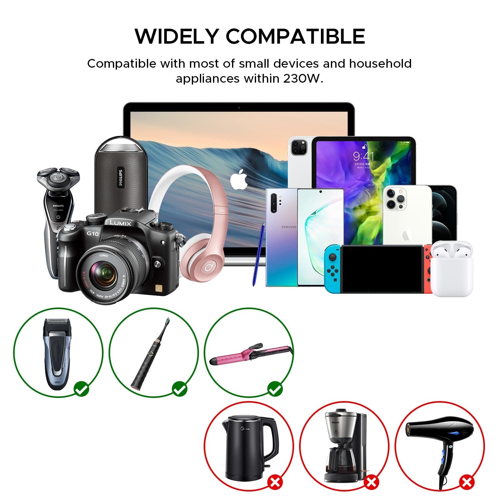 Maximum Compatible Appliance Wattage: 230W