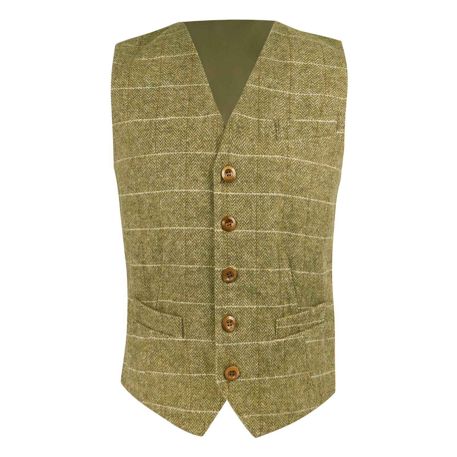 Luxury Green Herringbone Windowpane Check Waistcoat, Tweed