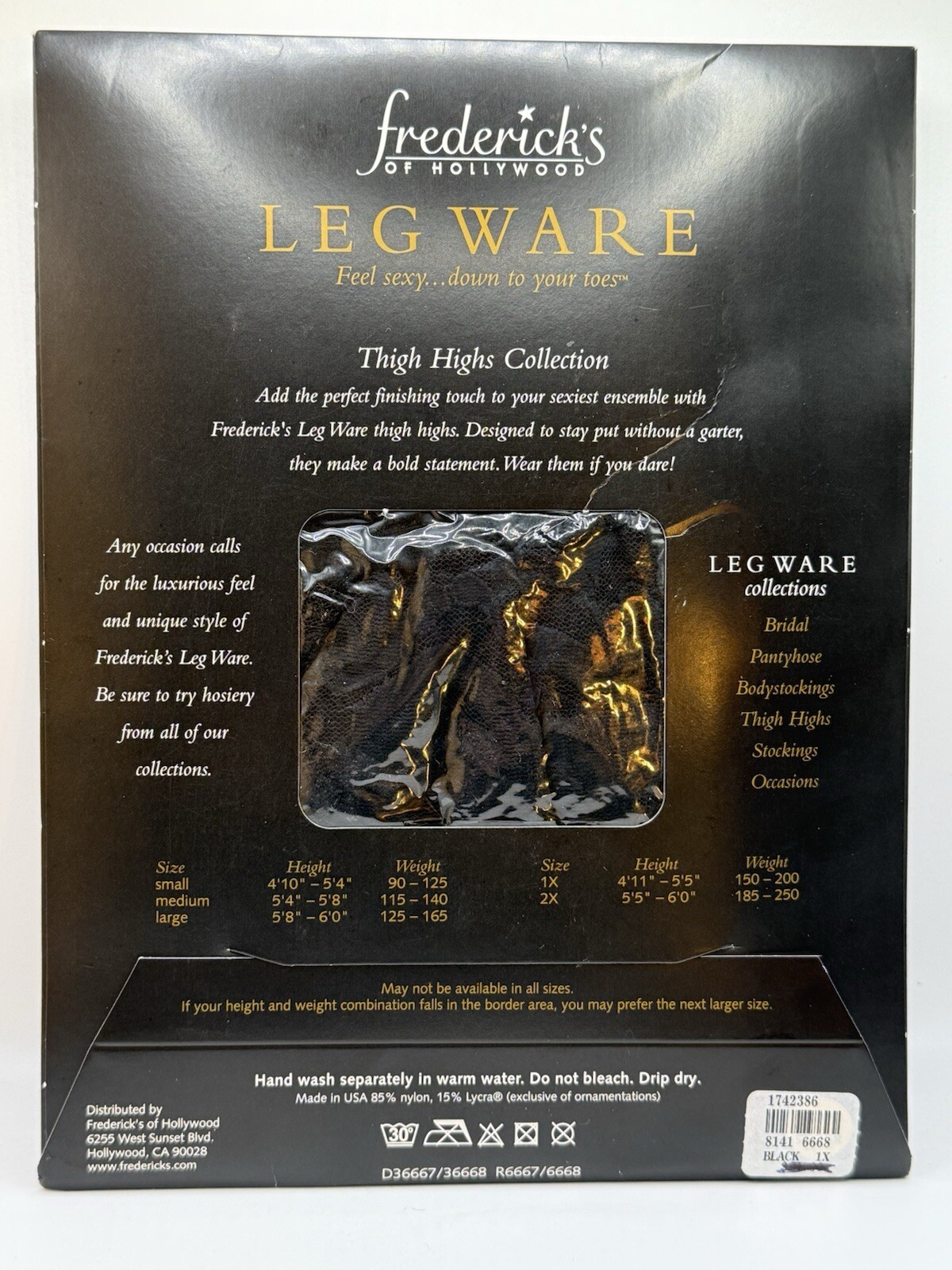 Fredericks of Hollywood Leg Ware Black Thigh High Stockings Scallop Lace Top 1X
