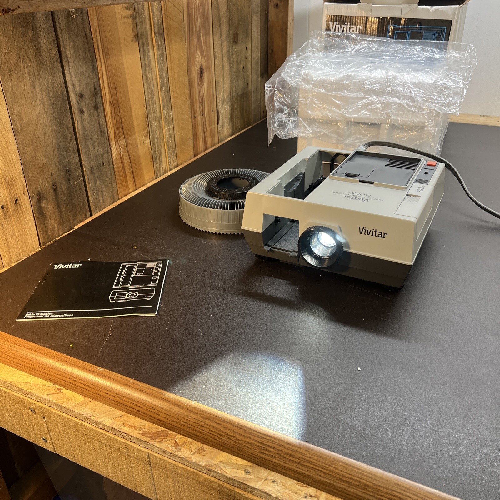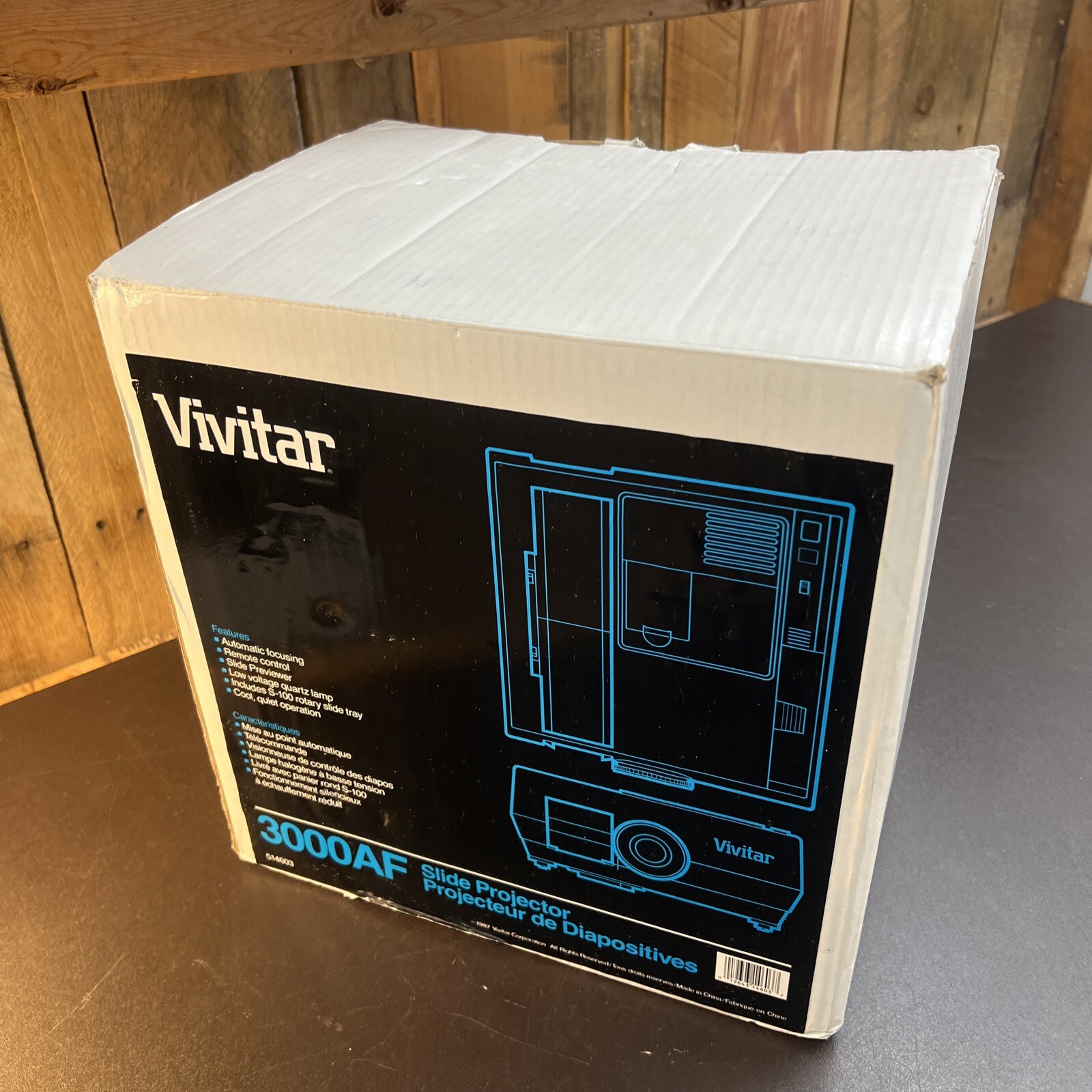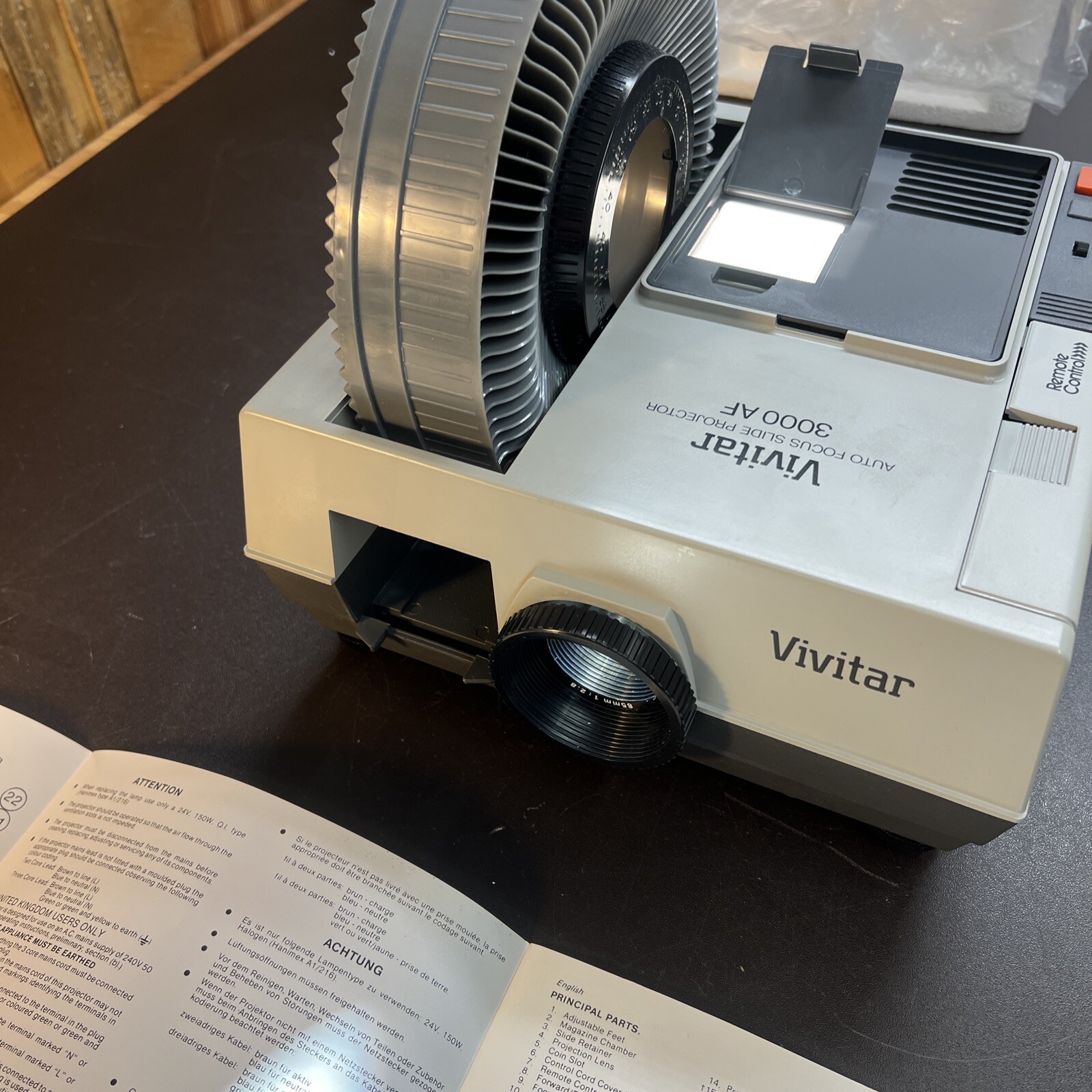 VIVITAR 3000 AF AUTO FOCUS SLIDE PROJECTOR w/ BOX Tray Remote Bulb - TESTED Nice
