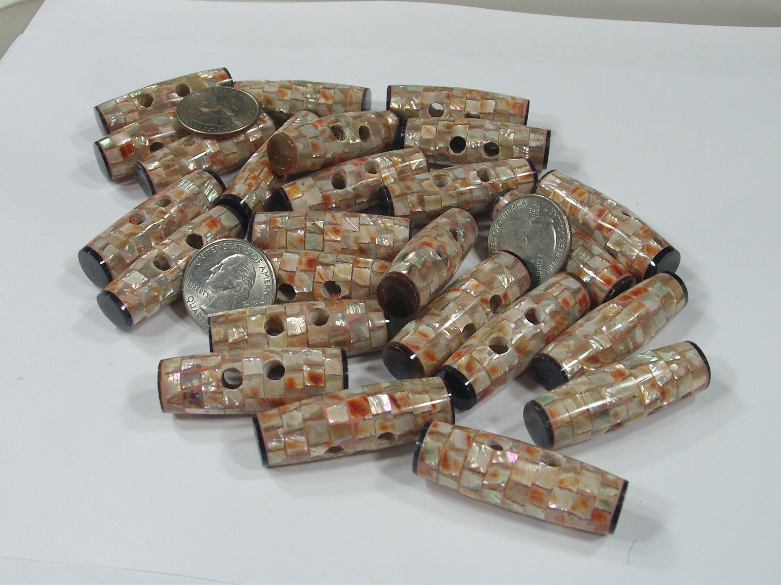 15 Pieces 14mm x 42mm Red Abalone Inlaid Shell Beads Wholesale Bulk MP-7
