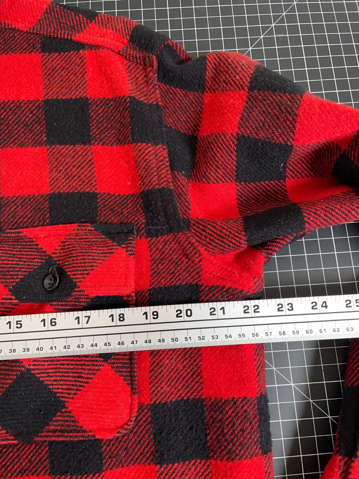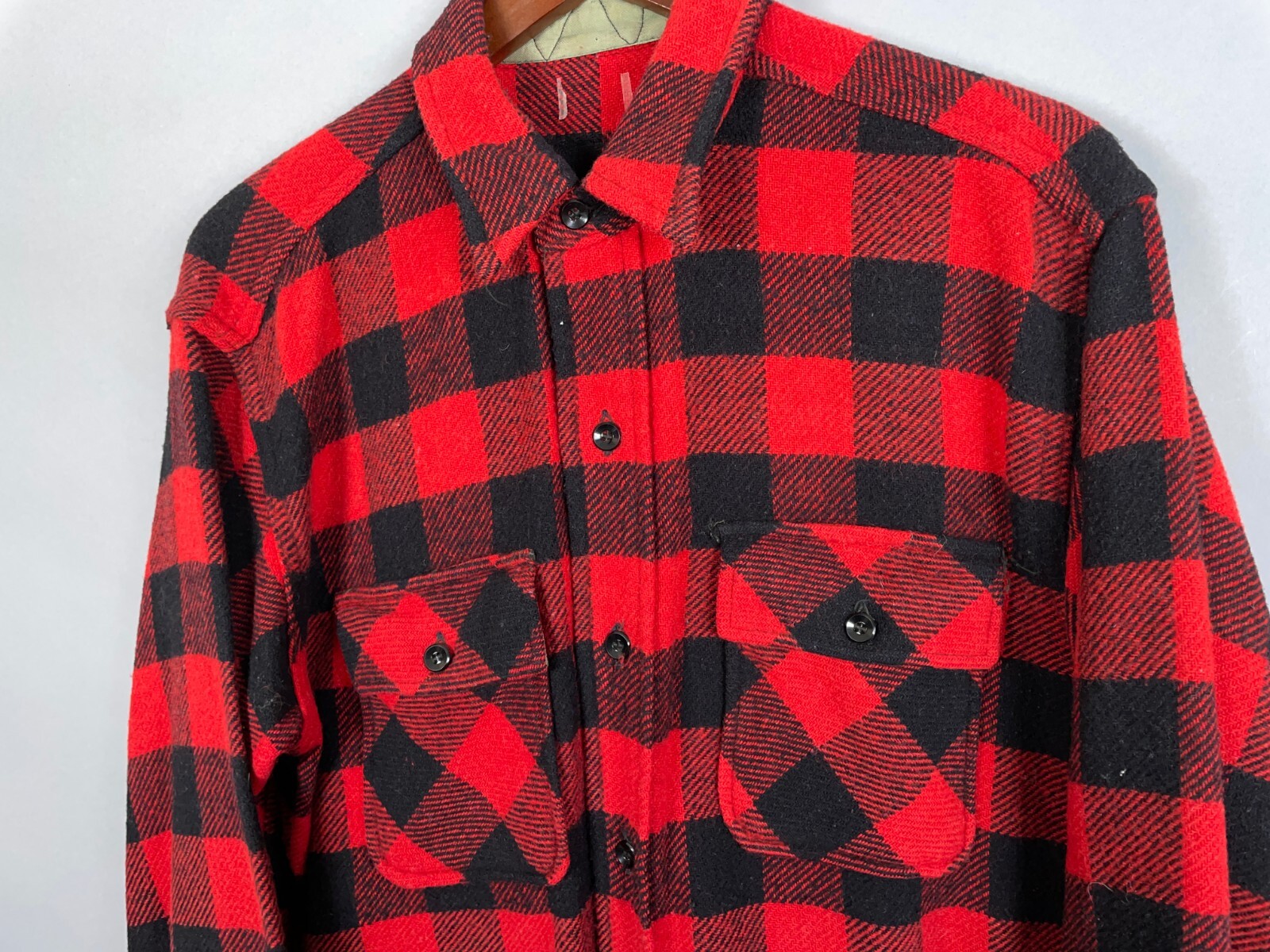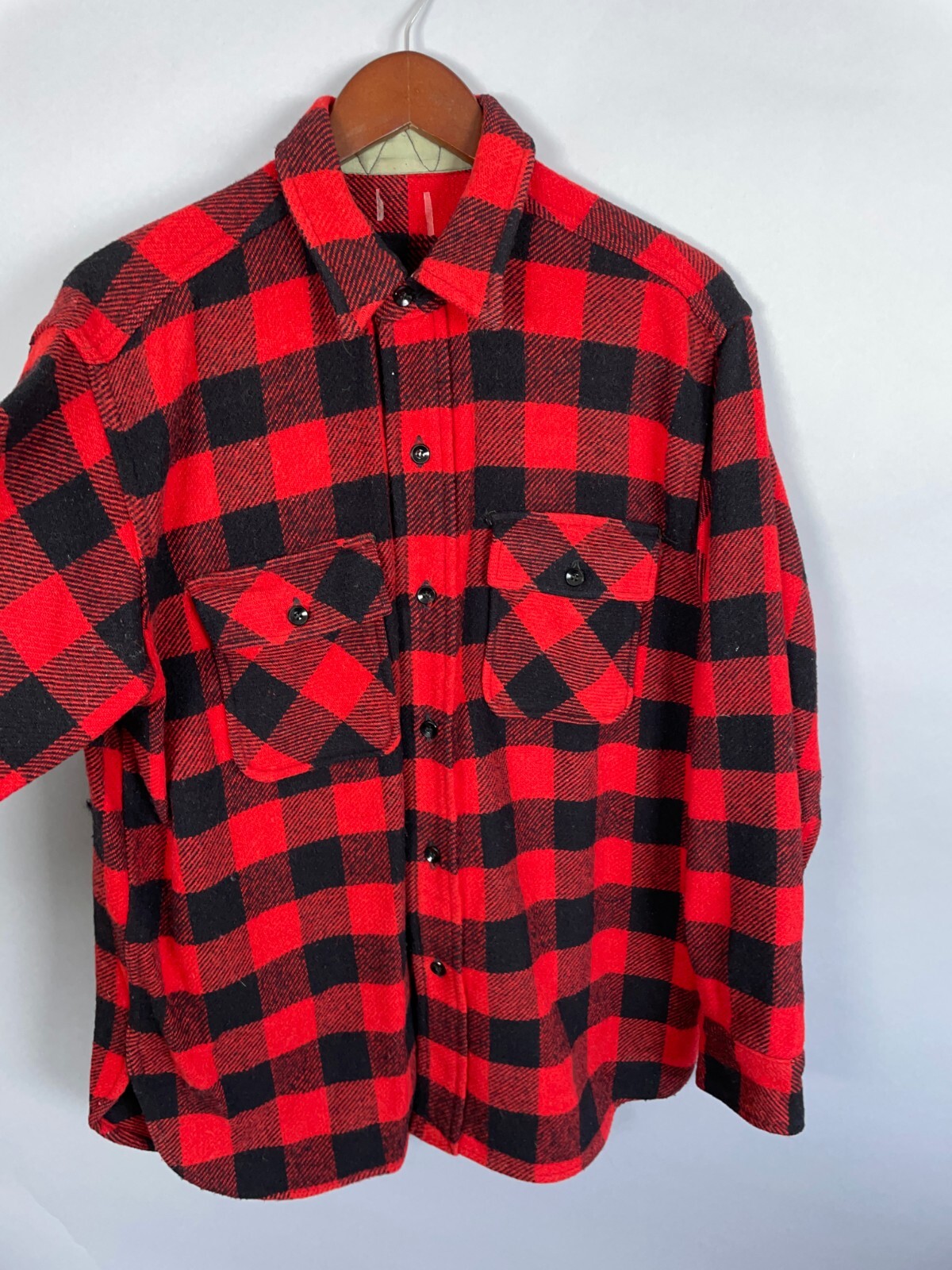как выглядит VTG Wool Buffalo Plaid Flannel Shirt Adult Large Red Black Workwear 70s 80s фото