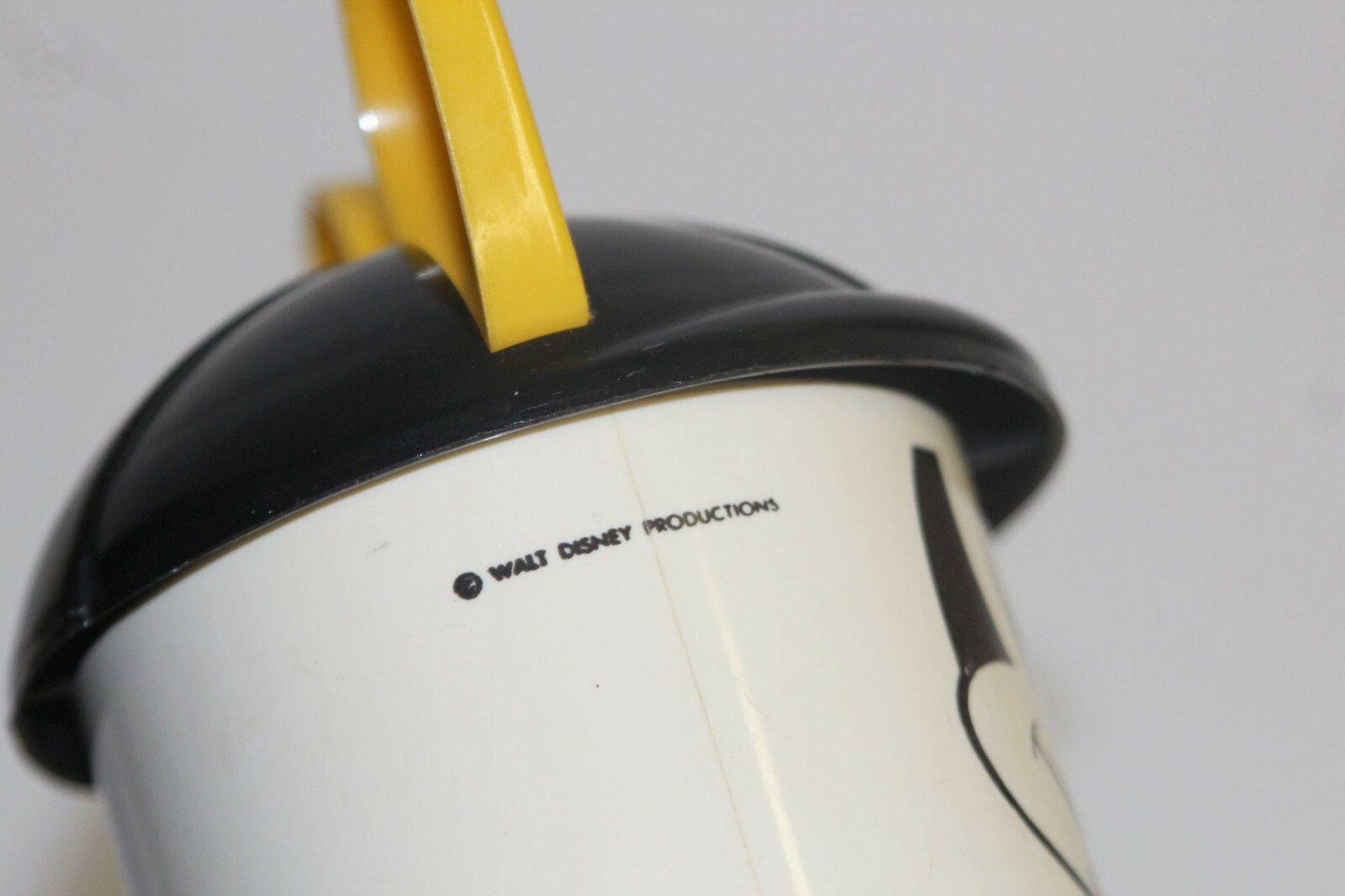 Vintage 1980s Plastic Walt Disney Mickey Mouse Sippy Cup Black Yellow Lid Ears