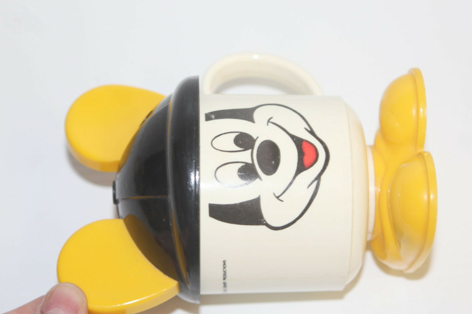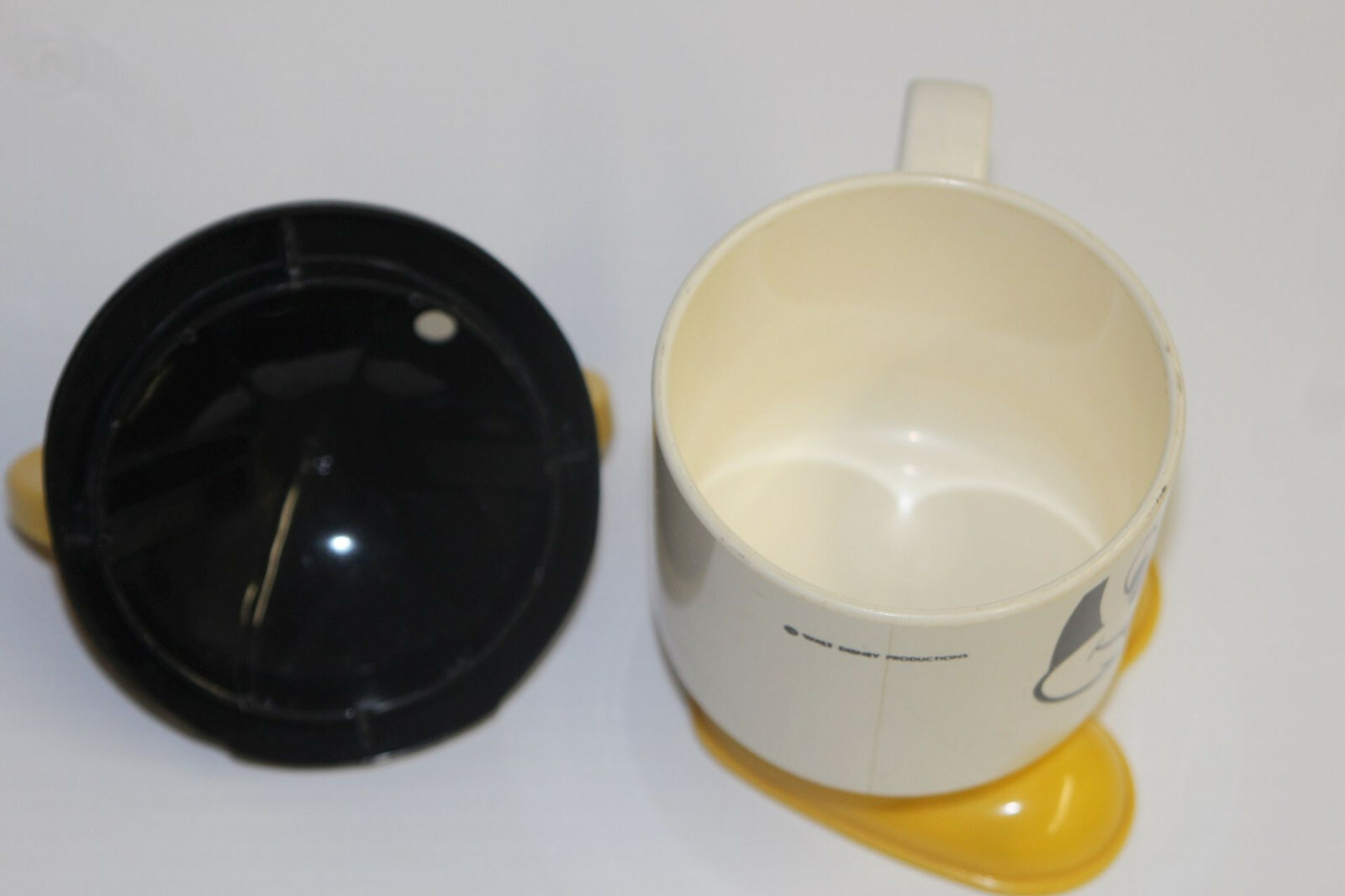 как выглядит Vintage 1980s Plastic Walt Disney Mickey Mouse Sippy Cup Black Yellow Lid Ears фото