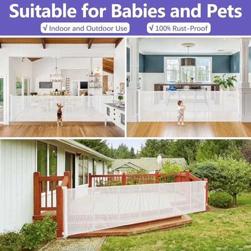 STCOCKIS NEWLY ENHANCED 42 TALL 120 EXTRA WIDE RETRACTABLE BABY GATE - WHITE