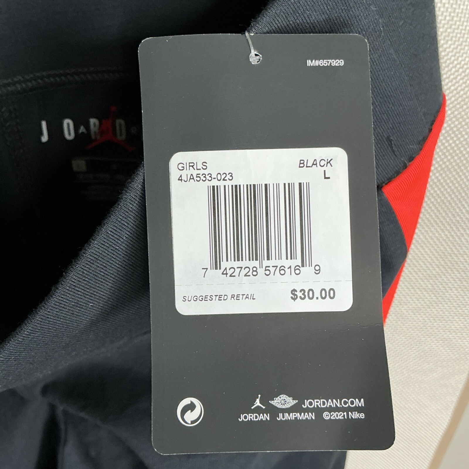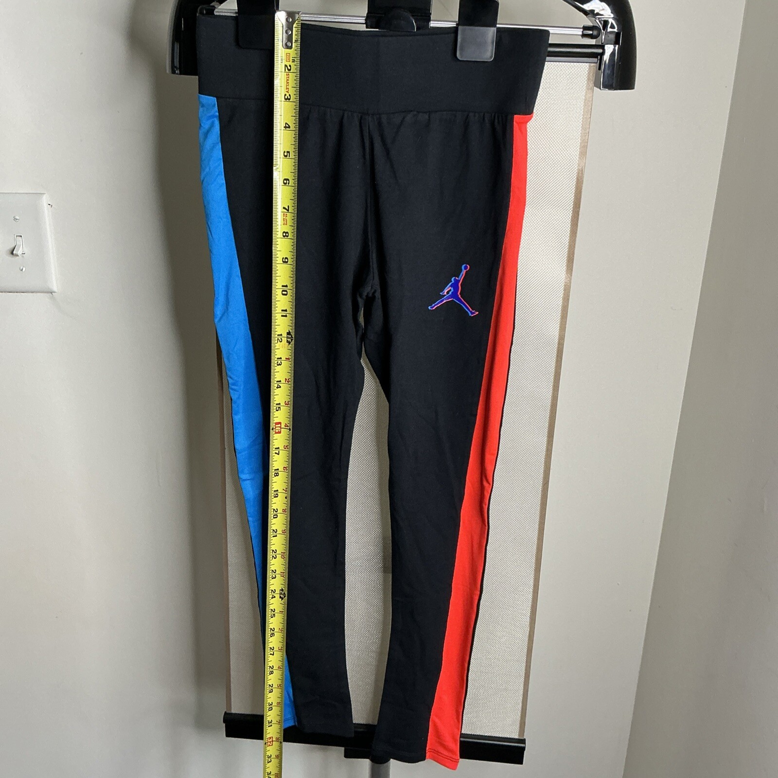NWT Air Jordan Big Girl's Black with Blue Red Stripe Athletic Leggings sz L