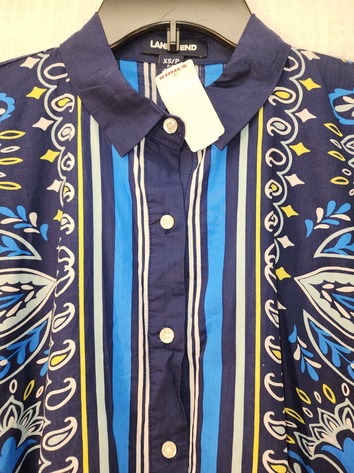 как выглядит Lands End Cover Up Xs 2-4 Blue Kaftan Tunic Cotton Poplin Button Down Paisley фото