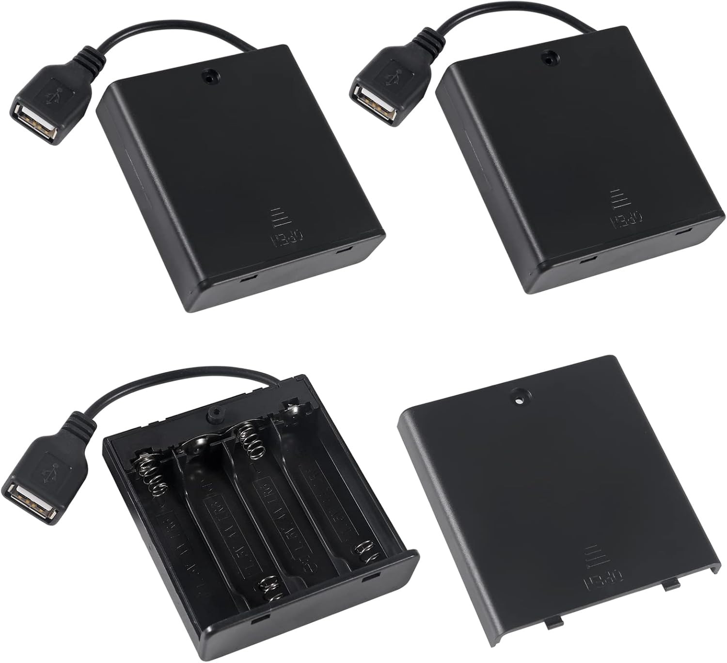 3Pcs 4 AA Battery Holder USB Female Socket 4 AA Battery Case Box Holder with Cov