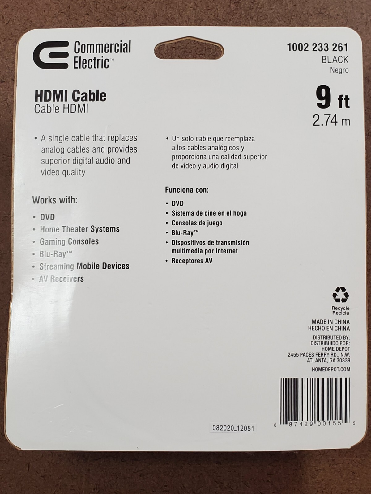 Commercial Electric 9 ft Standard HDMI Cable 1002 233 261 Black 10.2 Gbps Speed