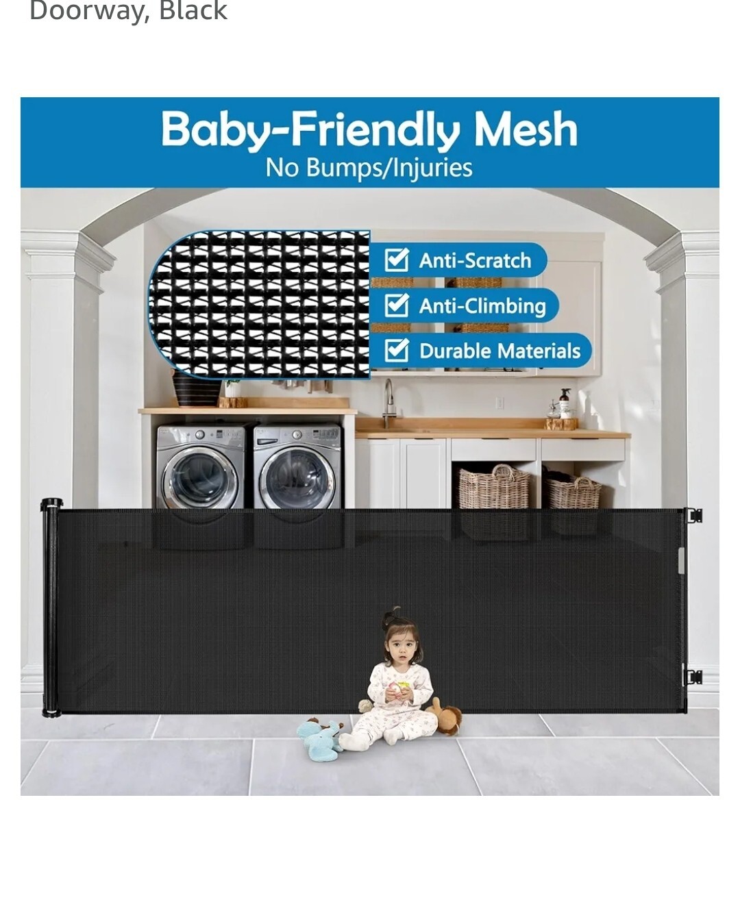 как выглядит 90 Inch Retractable Baby Gates Extra Wide Dog Gate Outdoor Retractable Gate GG10 фото