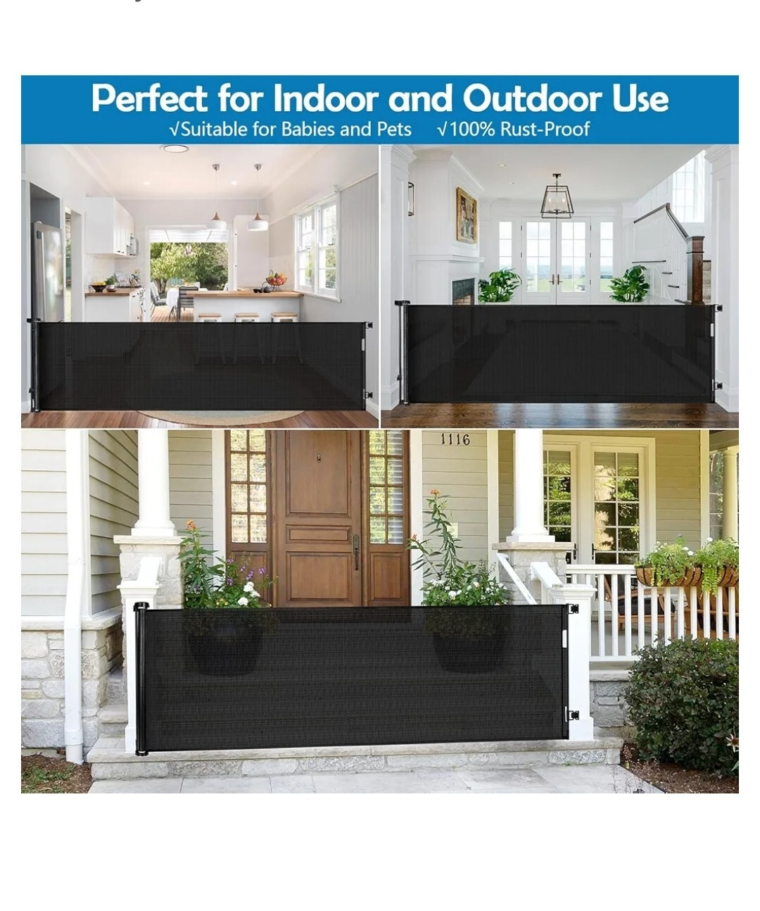 90 Inch Retractable Baby Gates Extra Wide Dog Gate Outdoor Retractable Gate GG10