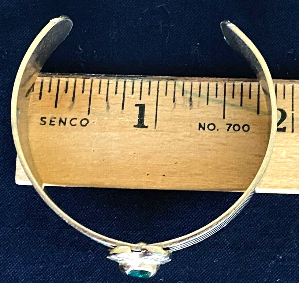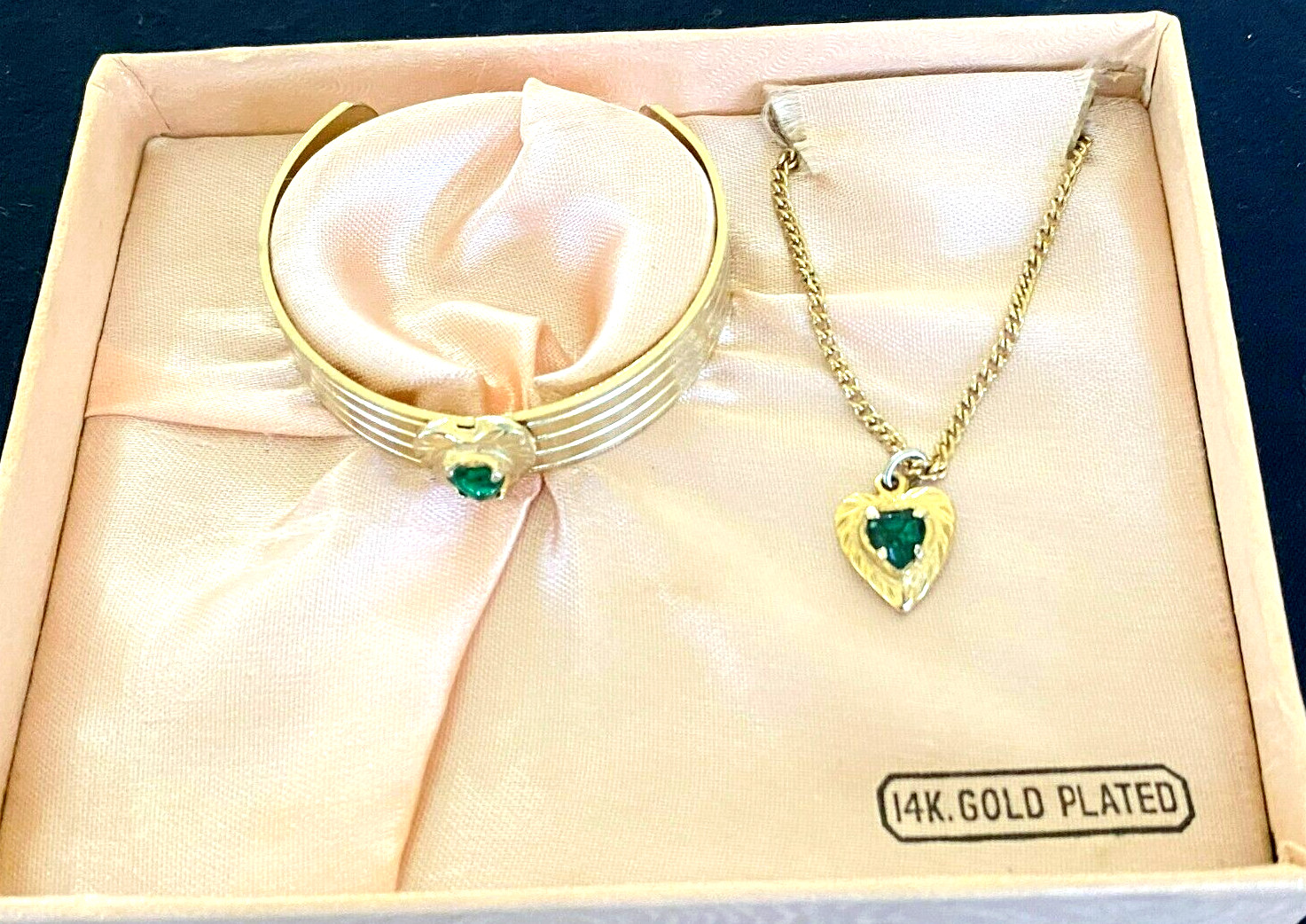 как выглядит Vintage Child-Size 14K Gold Plated Bracelet w/Matching Pendant Green Stones фото