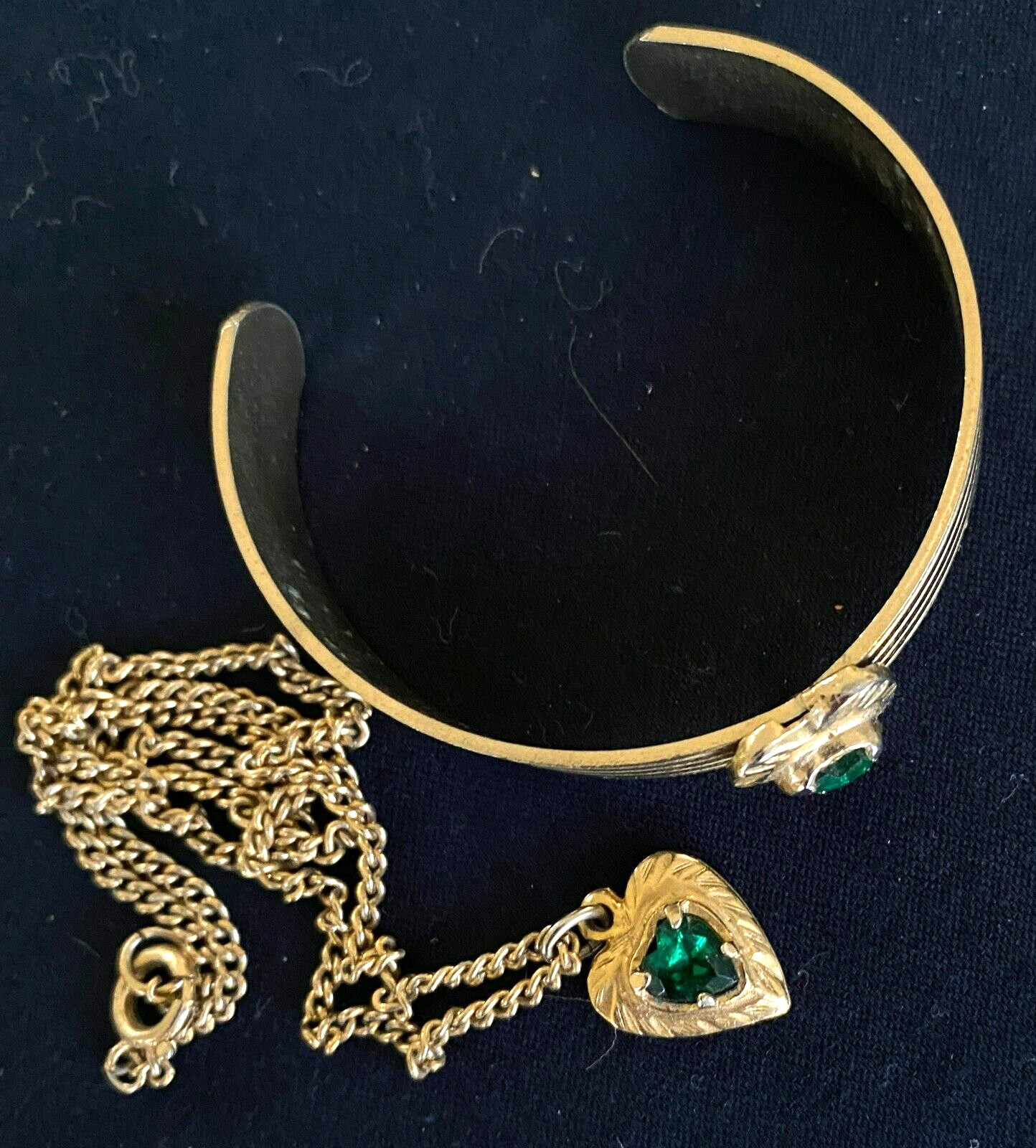 Vintage Child-Size 14K Gold Plated Bracelet w/Matching Pendant Green Stones