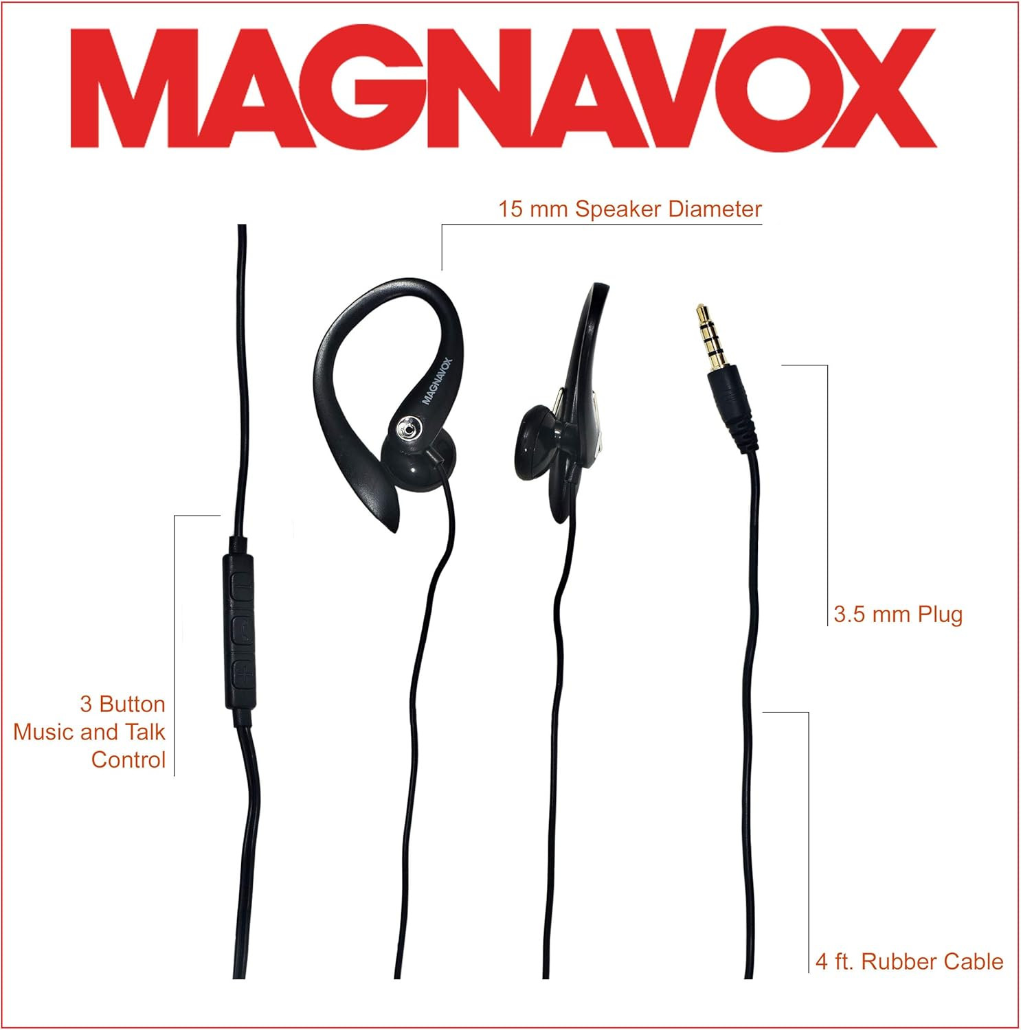 Magnavox MHP4854-BK Earhook Earbuds with Microphone in Black Available in Blac