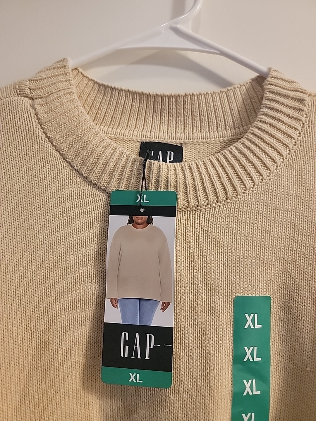 как выглядит Gap - Womens Crewneck Cotton Sweater With Side Slits - Taupe - Size XL - NEW фото