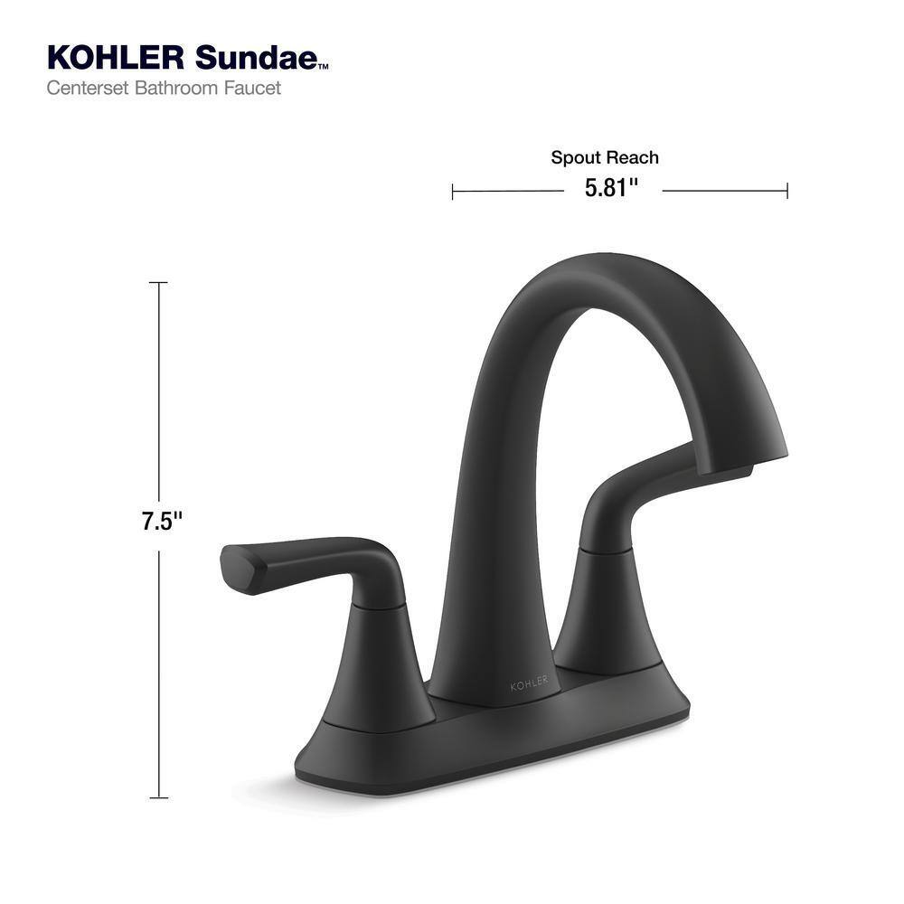KOHLER Sundae 4 in. Centerset 2-Handles Bathroom Faucet in Matte Black