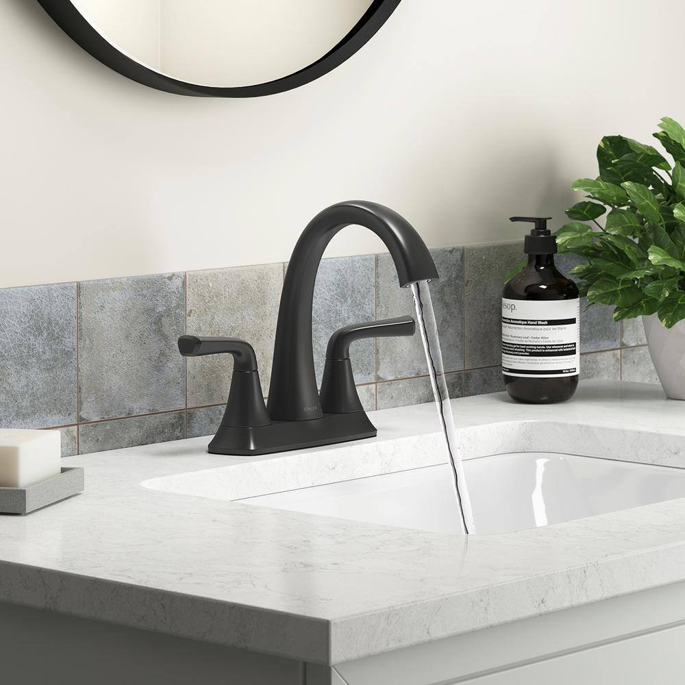как выглядит KOHLER Sundae 4 in. Centerset 2-Handles Bathroom Faucet in Matte Black фото
