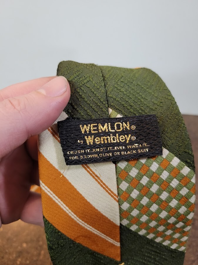 Wemlon Wembley Vintage 60s 70s Men's Tie Orange Green Necktie