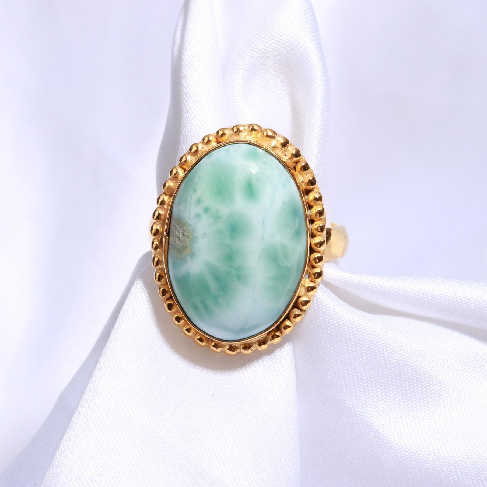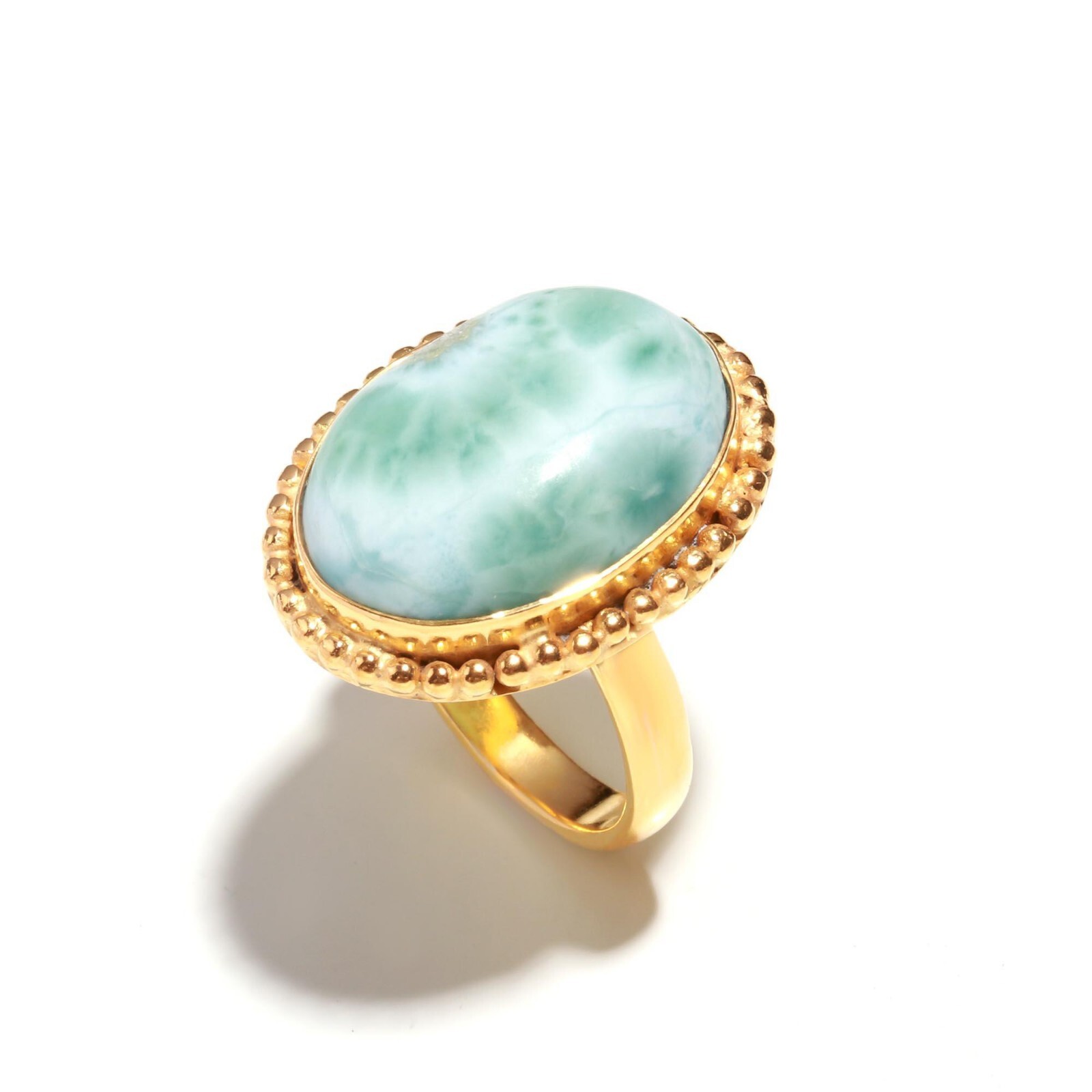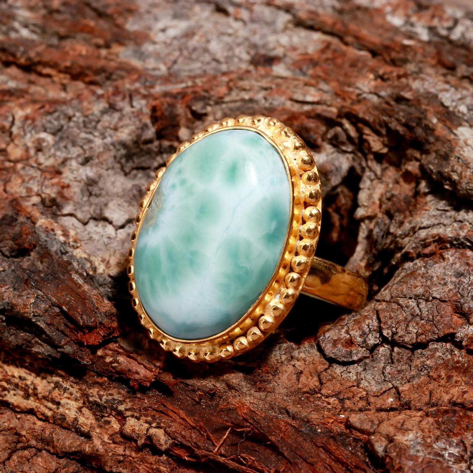 как выглядит Natural Larimar Oval Shape Bohemian Ring Gold Plated Engagement Jewelry For Her фото