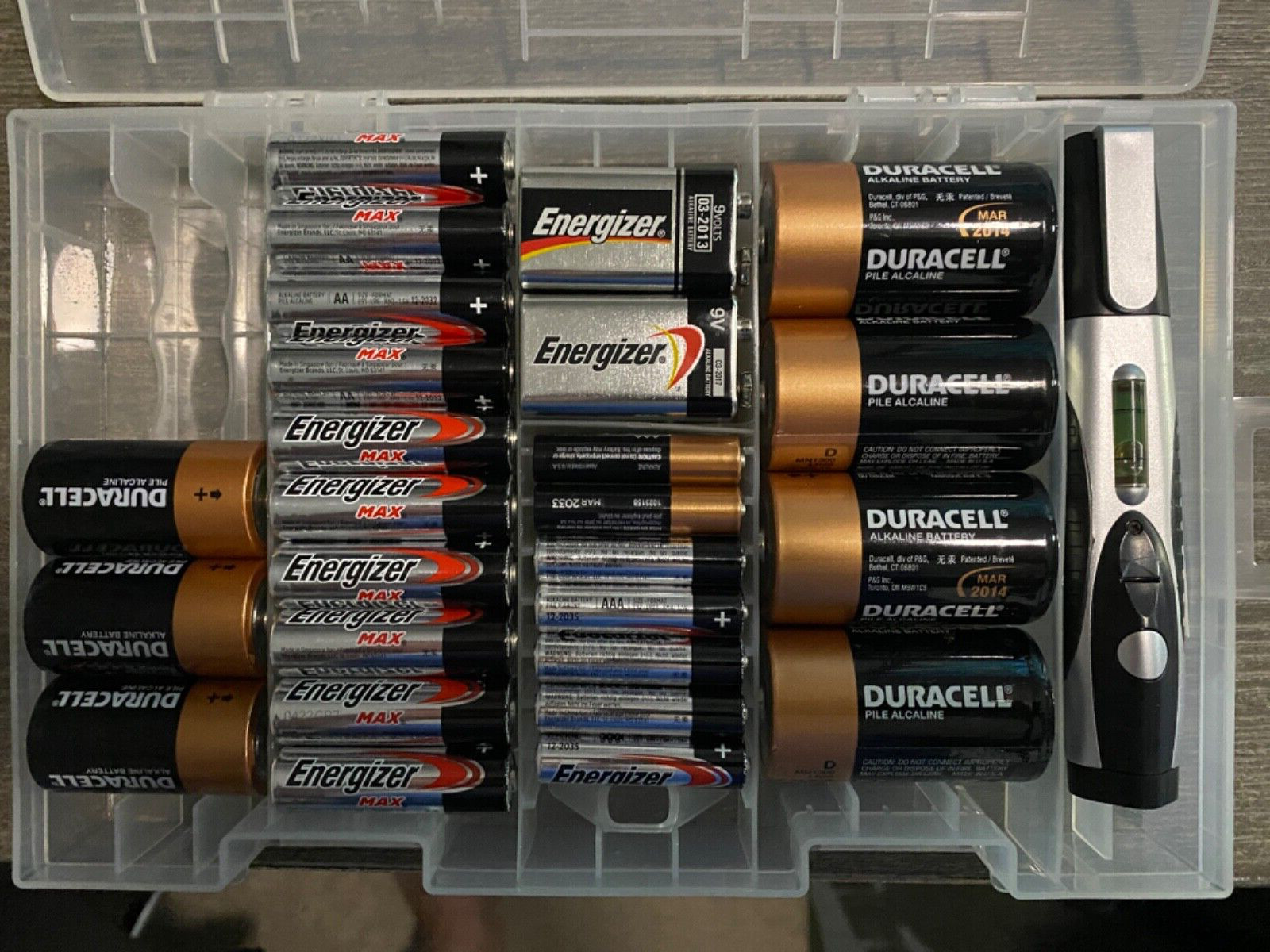 CVS Battery Storage Box LED Flashlight Combo AA AAA C D 9V Organizer Holder