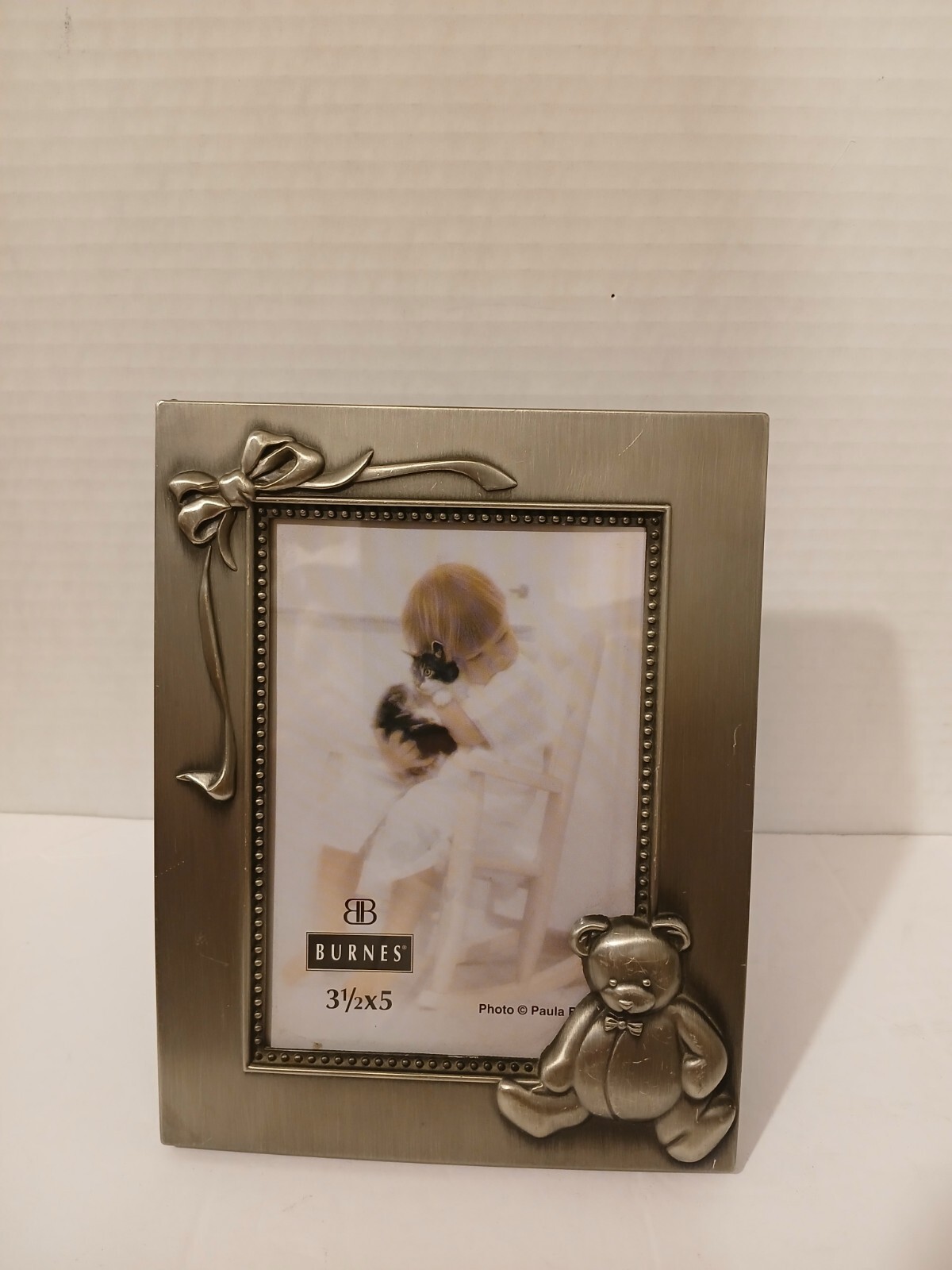 3.5x5 Inch Burnes Of Boston Pewter Baby Picture Frame Teddy Bear Heart Design