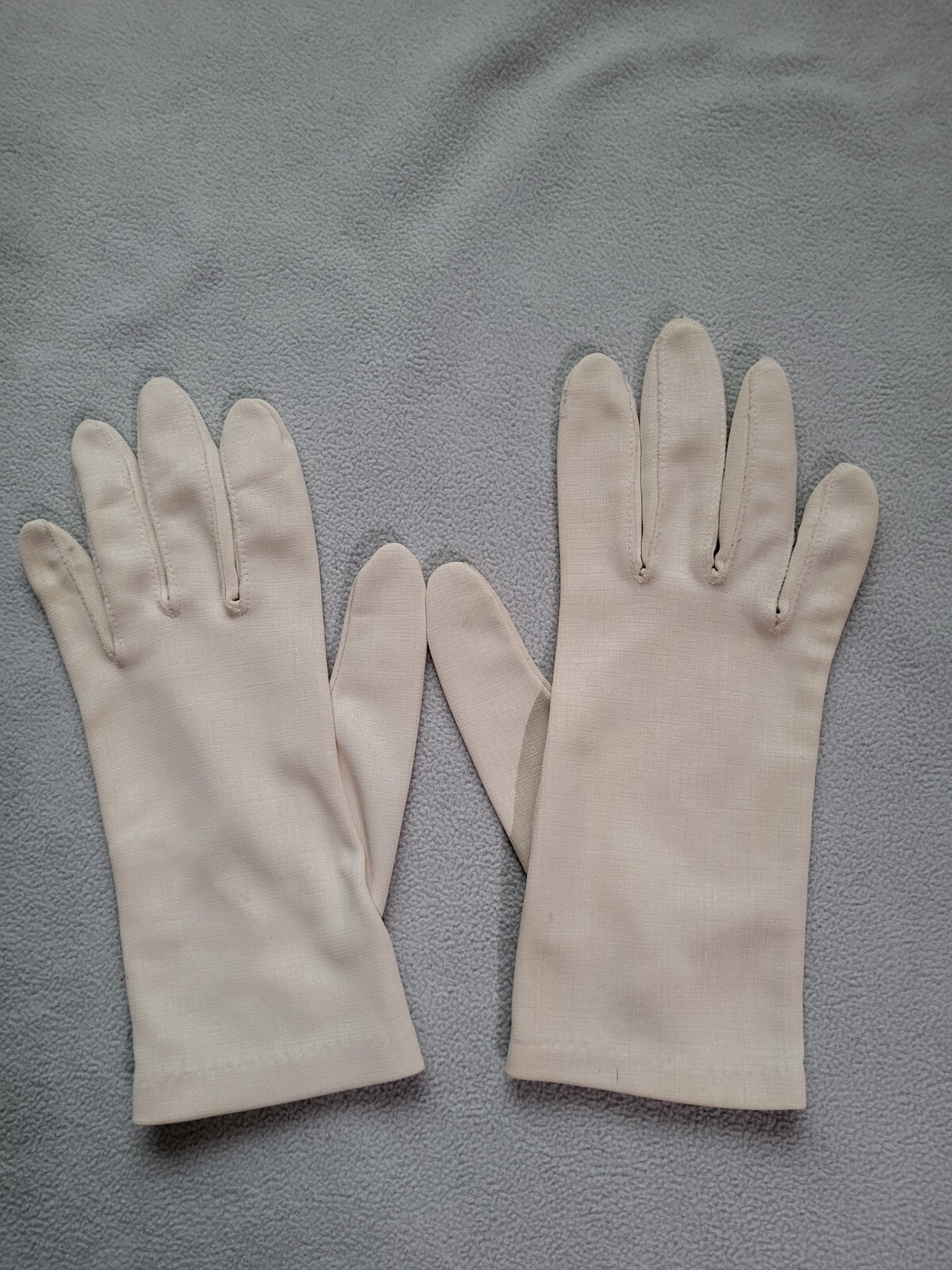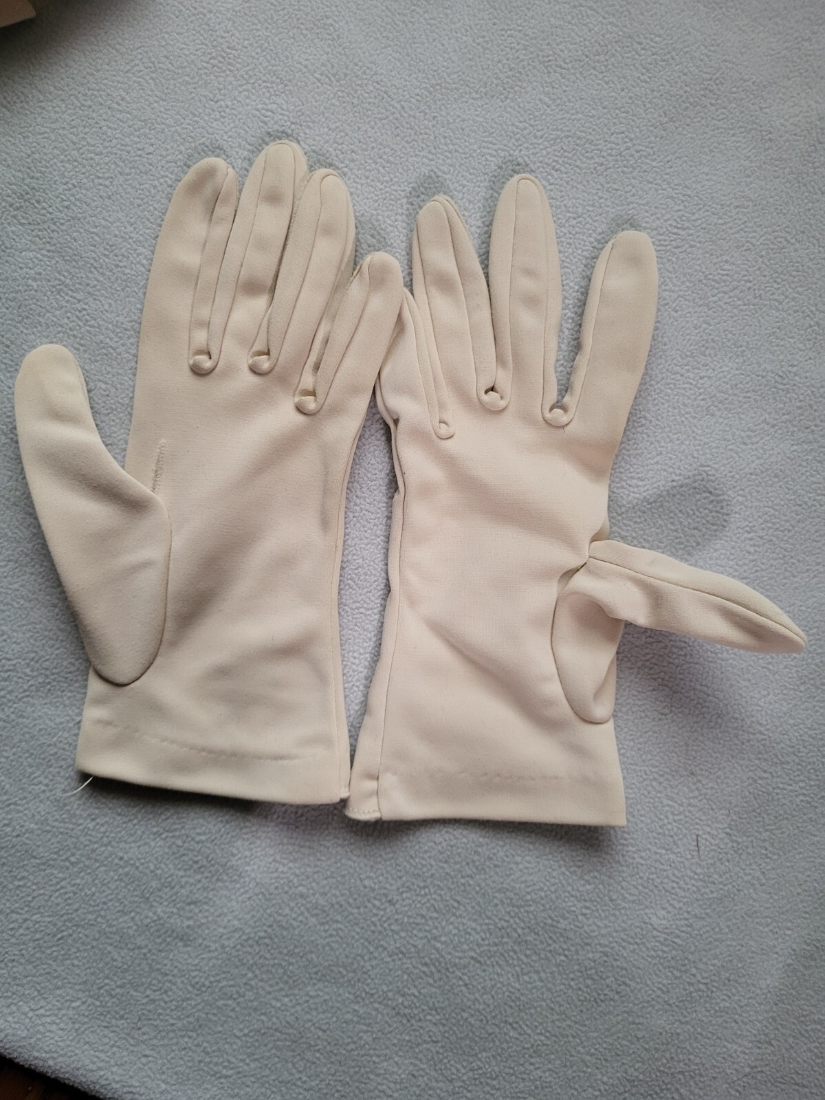 как выглядит 2 Pairs Womens Vintage Stetson Nylon Riding Gloves Beige Sz 7.5 Read фото