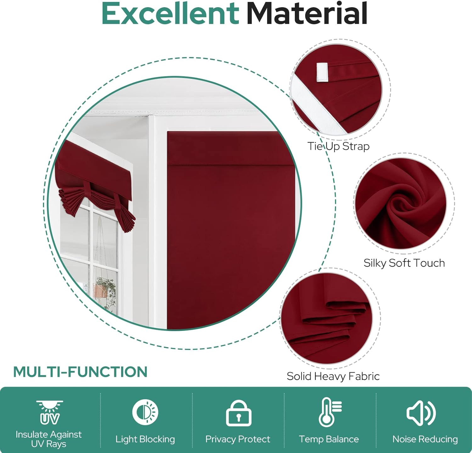 HOMEIDEAS Burgundy French Blackout Door Curtains, 26 X 40 Inch Room Darkening Cu